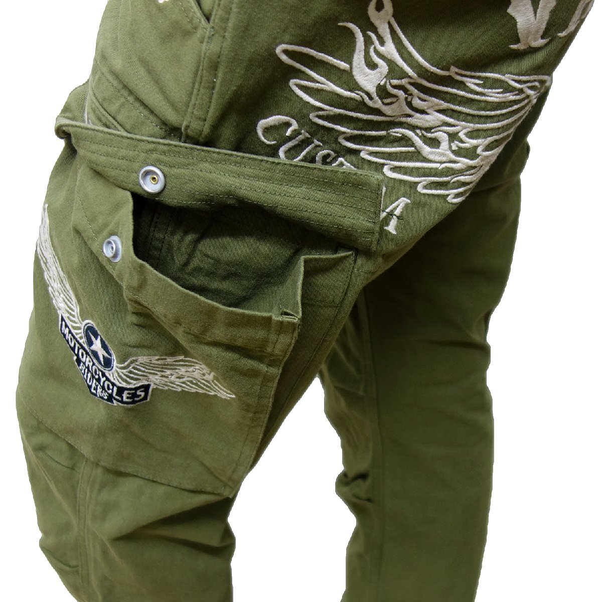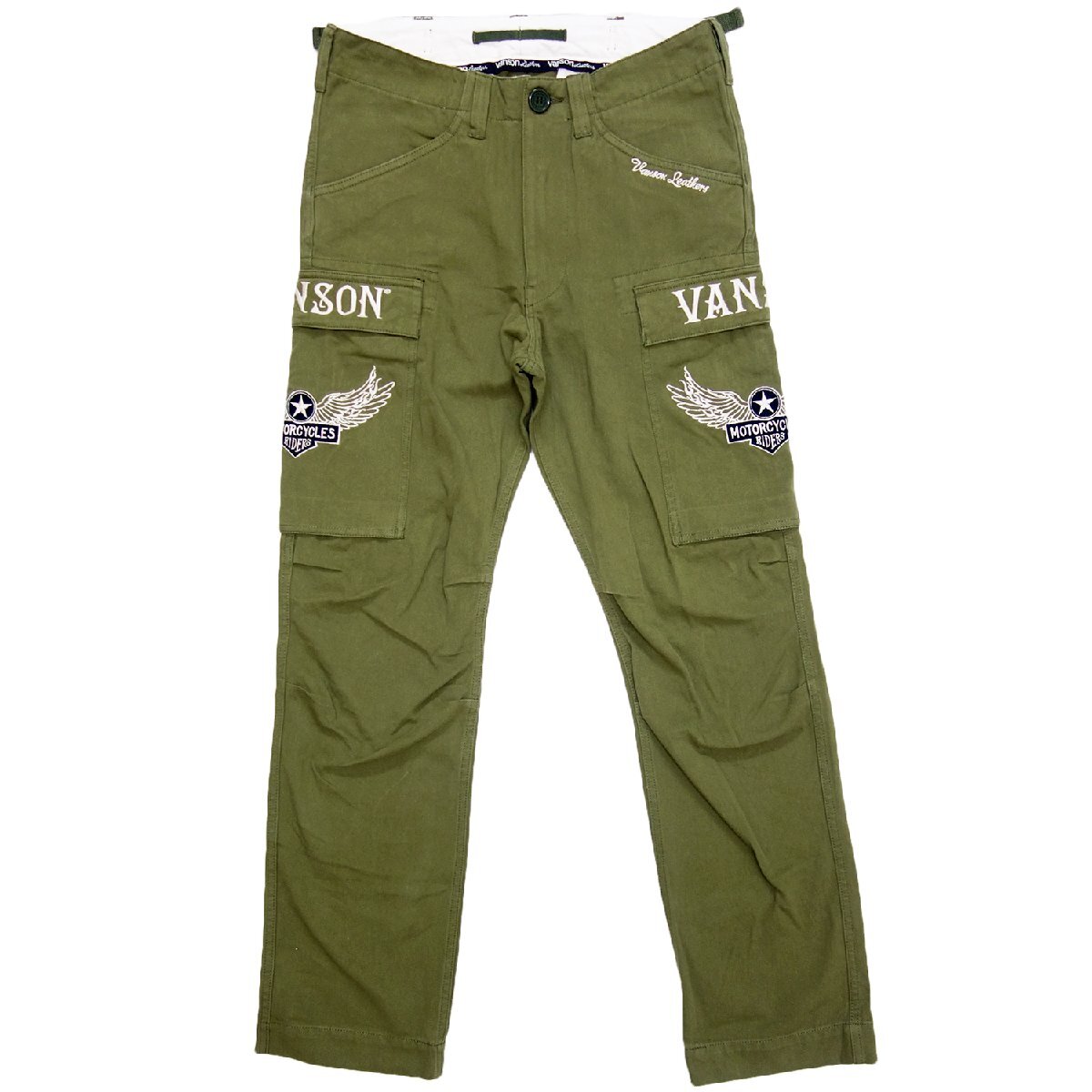 バンソンのカーゴパンツ、2023年春モデルのボトムス・新作です。人気のフライングスターが緻密な刺繍であしらわれており、インパクト抜群の仕上がりになっています。オリジナルのフロンボタンやIDEAL製のフロントジッパーなど細部までこだわりの感じられるロングパンツです。アウトドアやタウンユースなど様々なコーディネイトに取り入れやすく、色違いで欲しくなってしまう万能ズボンです♪