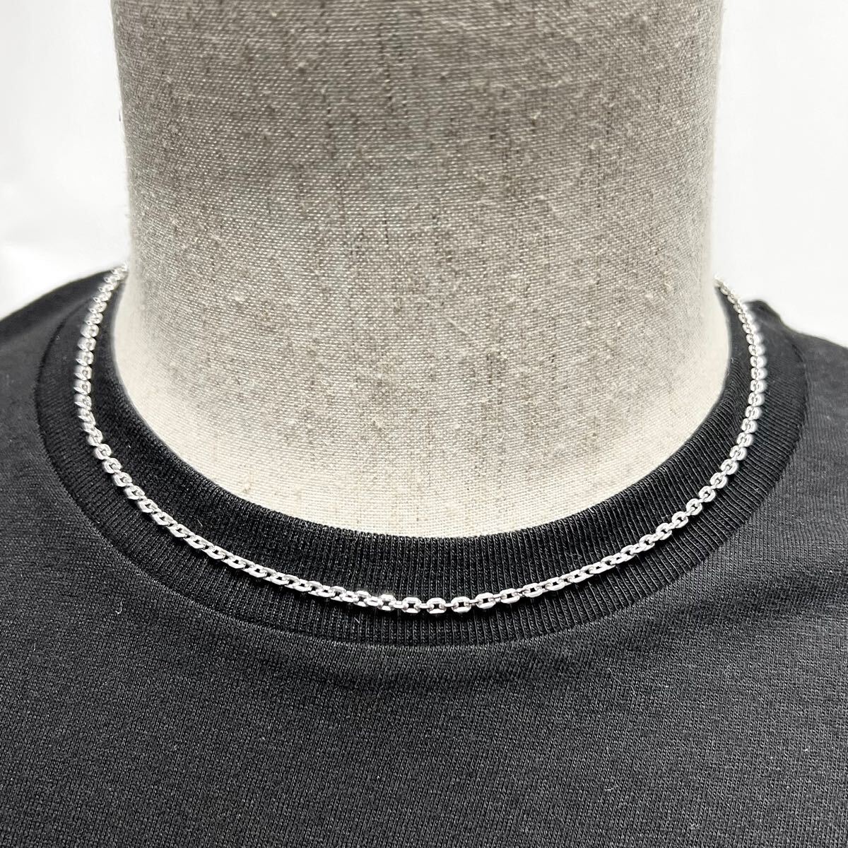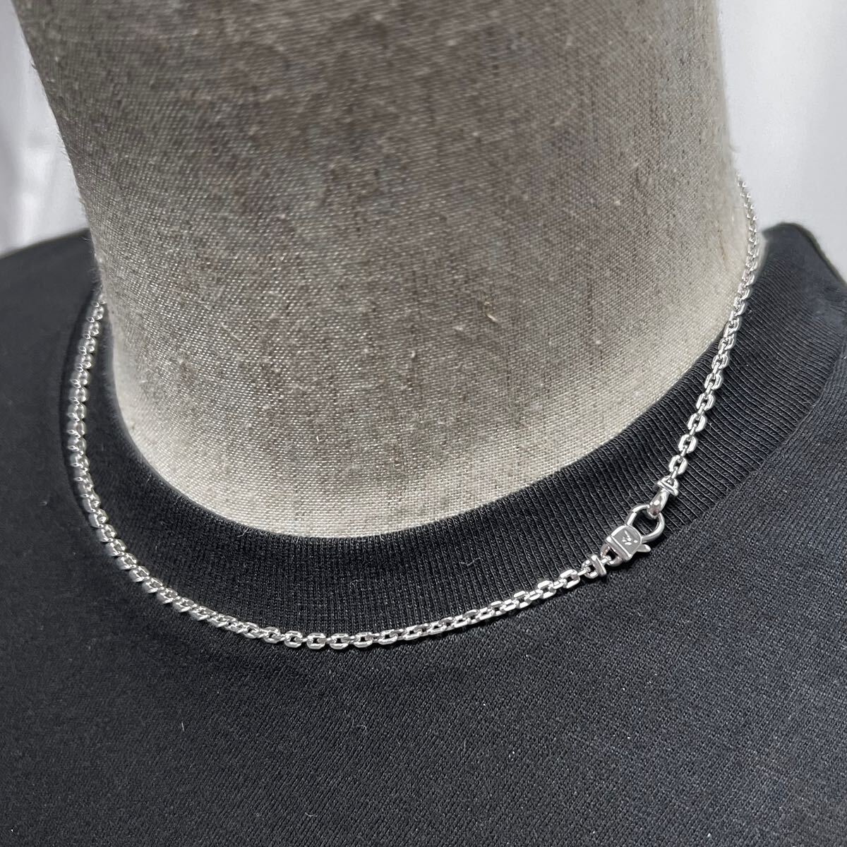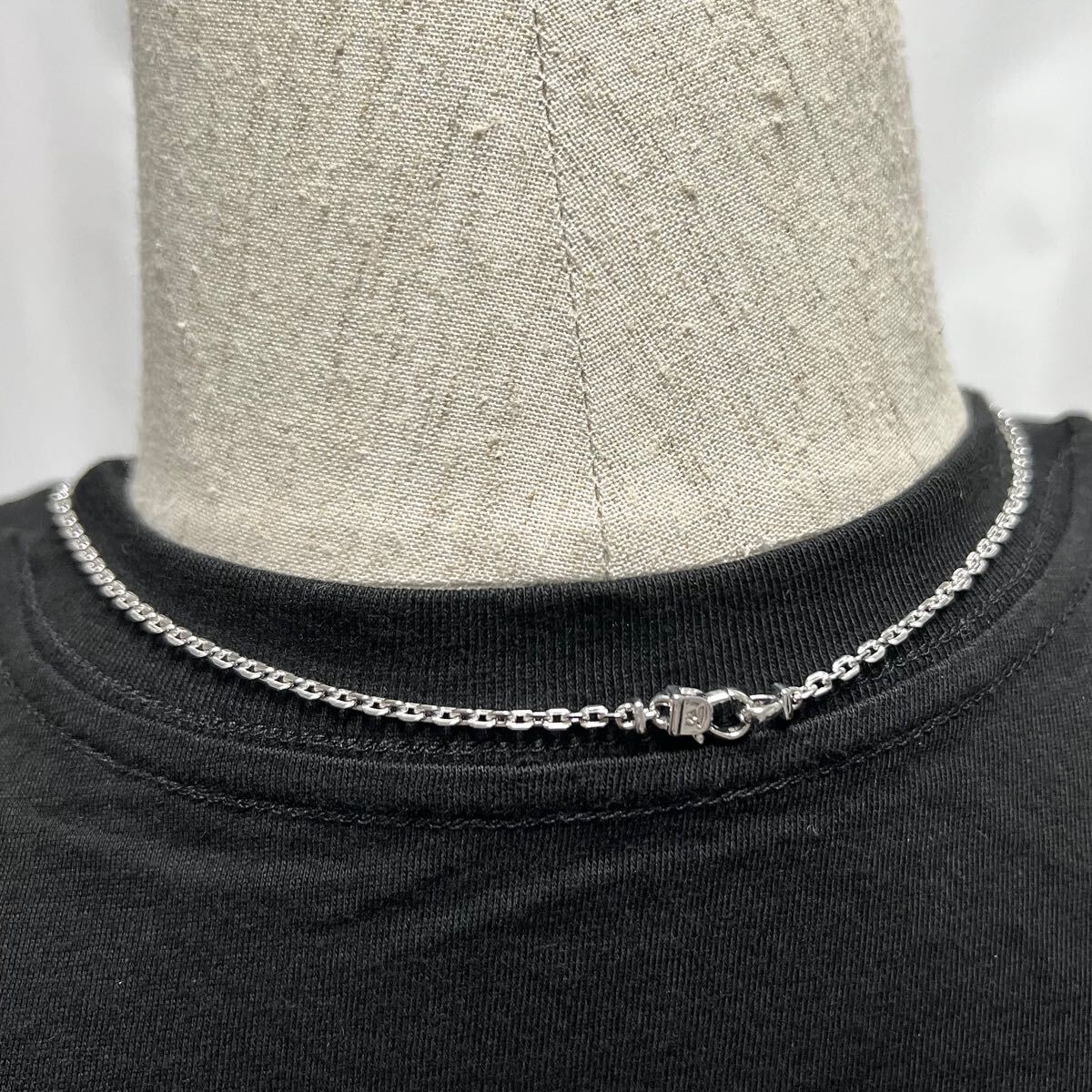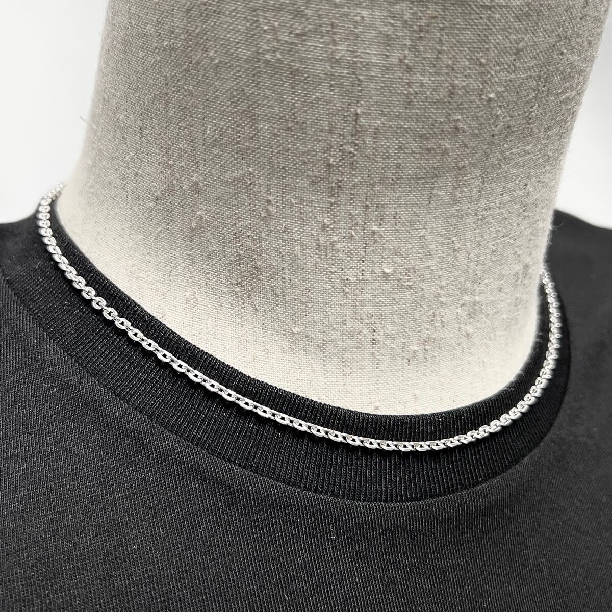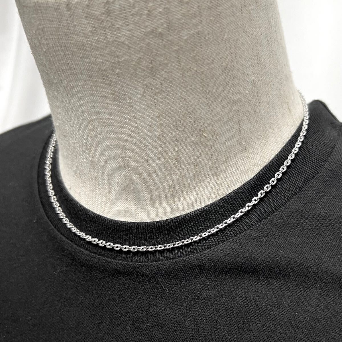 ポリッシュ仕上げのチェーンは高品質の925スターリングシルバー製でホワイトロジウムプレーティングを施し、表面を強化し変色を防いでいます。