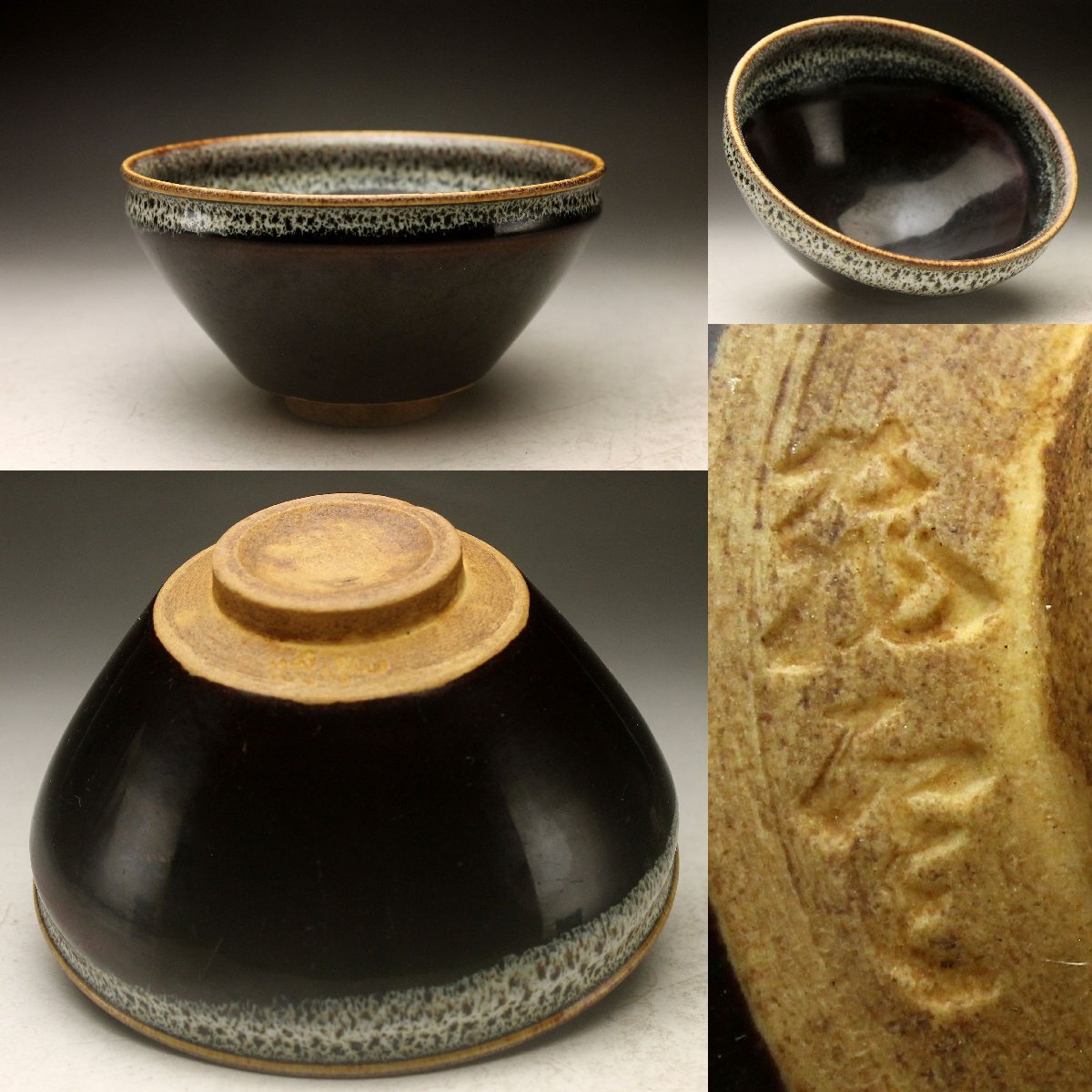 【余韻】 京焼 飛雲銘 鈞窯釉 天目碗★無傷美品 茶道具<同梱可>