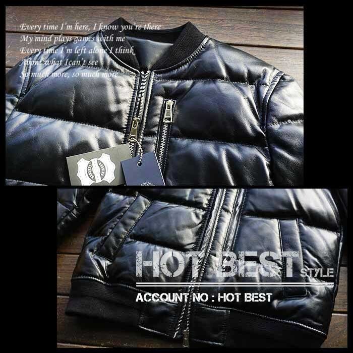 表地は軽くて柔らかいイタリアンシープスキン、保温材はダウン90%、フェザー10%の混合率で作られたMA-1タイプのレザーダウンジャケットです。襟、袖、裾がリブ仕様で風の侵入を防ぎます。