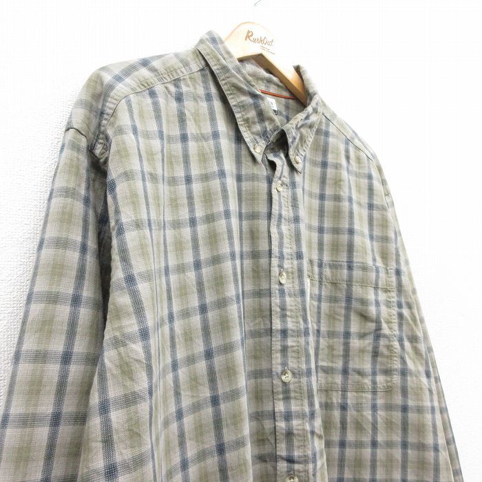 【商品名】 XL★古着 コロンビア 長袖 ブランド シャツ メンズ 00年代 00s 大きいサイズ ロング丈 コットン ボタンダウン 緑系他 チェック