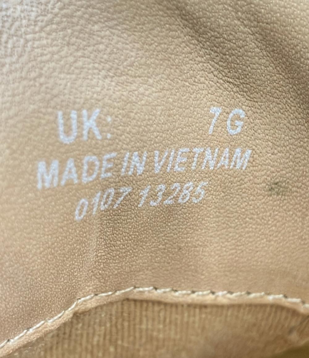 | ※採寸は平置きの状態で行っています。 ※表記サイズ(メーカー公表サイズ)がcm表記でない場合、日本サイズ(cm)を目安として記載している場合がございます。 ブランドごとのサイズ感や、素材、経年劣化などにより、実際のサイズとは多少異なる場合がございます。 ※商品によっては、図の項目全てを採寸していない場合がございます。 ※アウトソールや甲幅など、採寸サイズの多少の誤差はご容赦ください。 |