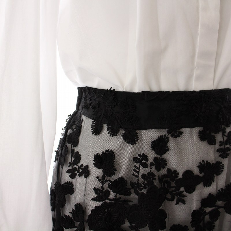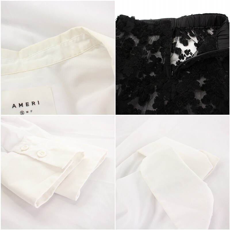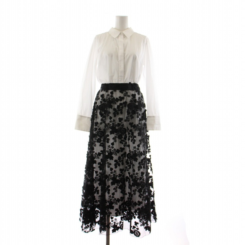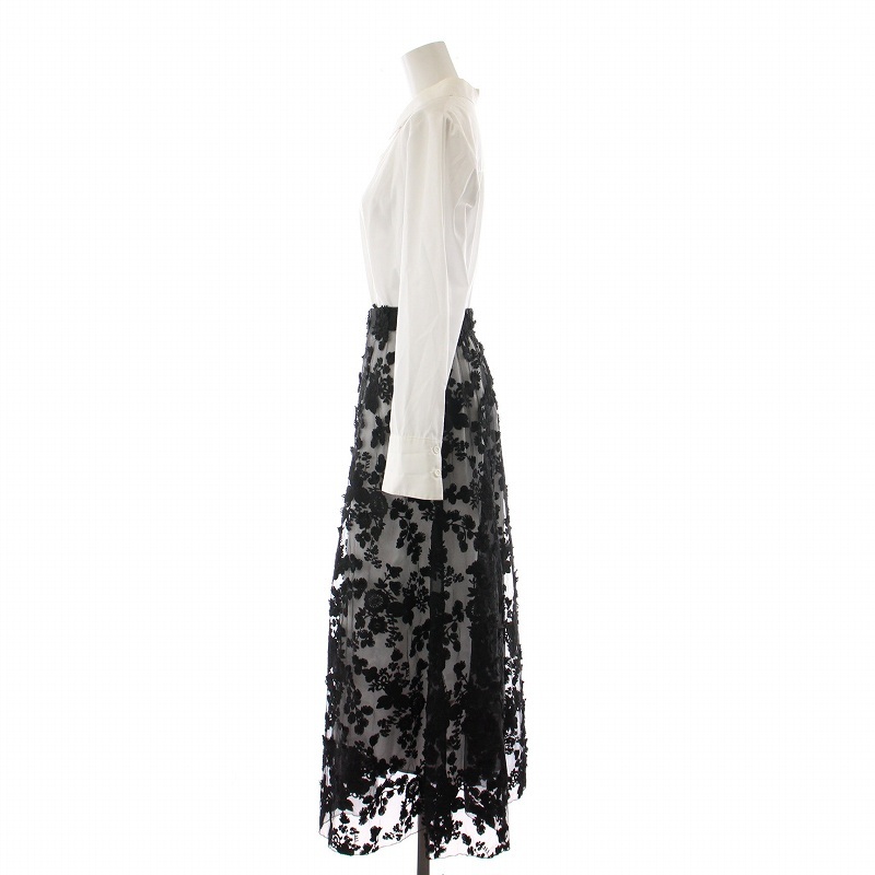 アメリヴィンテージ Ameri VINTAGE シャツワンピース ロング フレアレーススカート フラワーモチーフ 長袖 S ホワイト ブラック