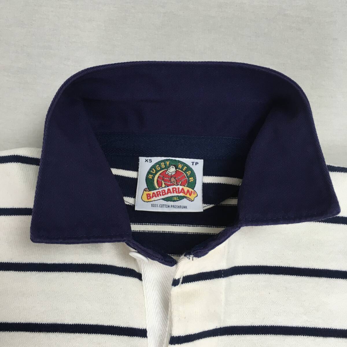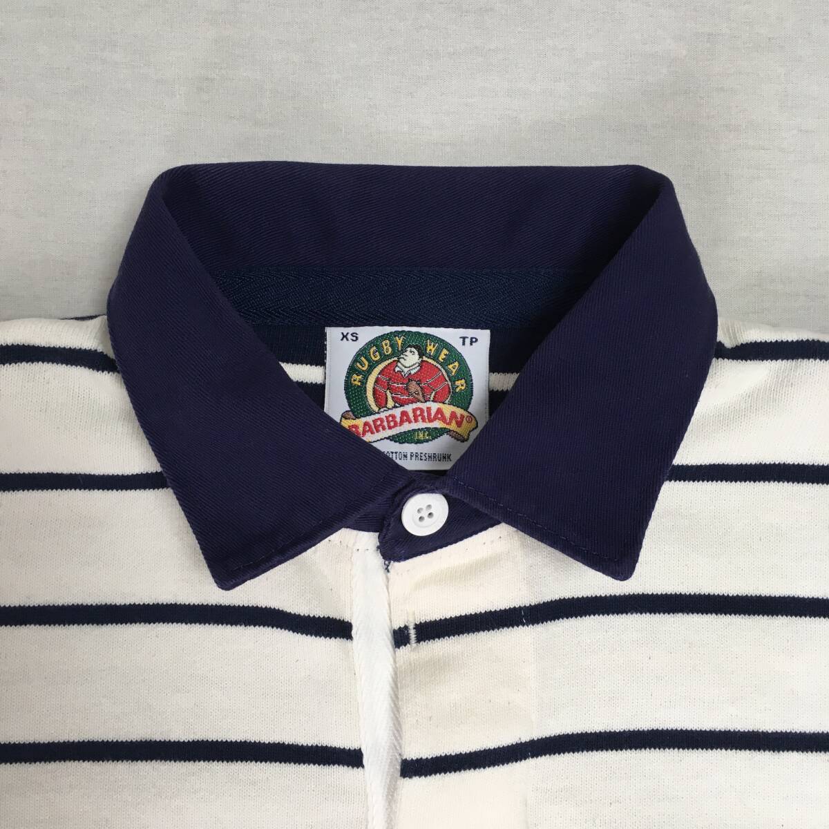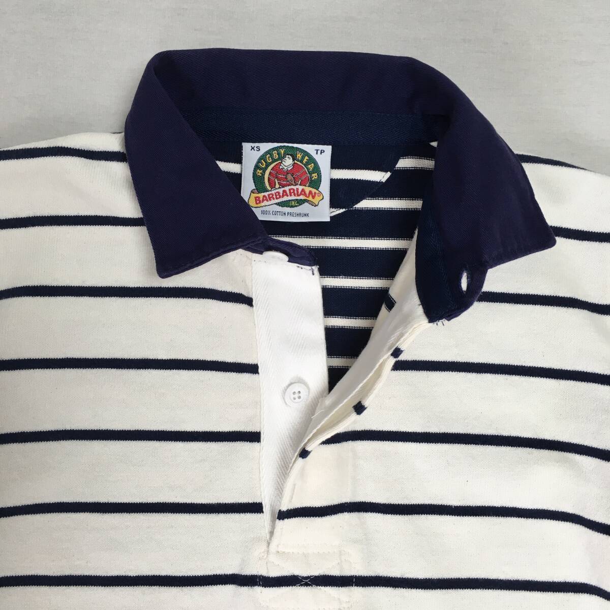 BARBARIAN バーバリアン ラガーシャツ カナダ製 XSサイズ 生成り色/ネイビー ボーダー 半袖 コットン