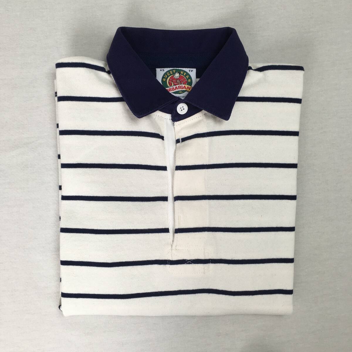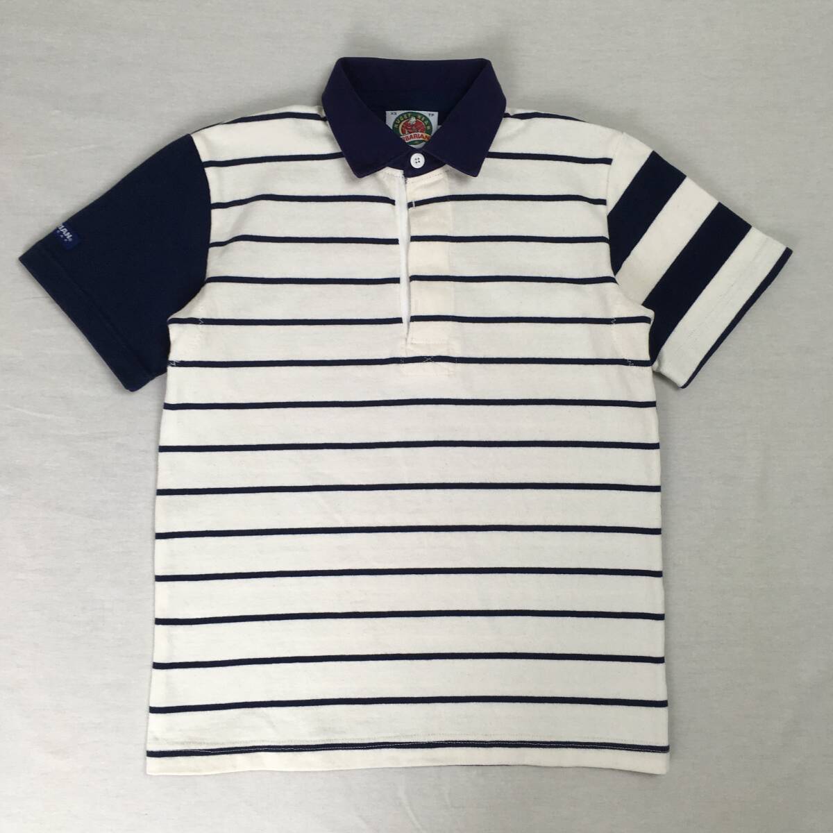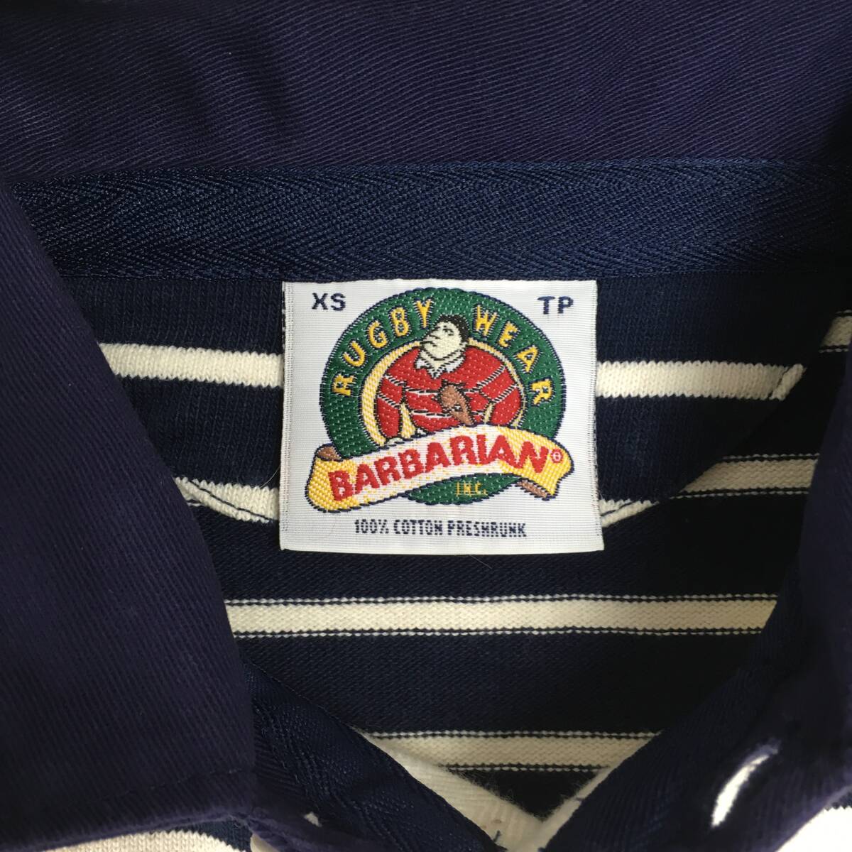BARBARIAN バーバリアン ラガーシャツ カナダ製 XSサイズ 生成り色/ネイビー ボーダー 半袖 コットン