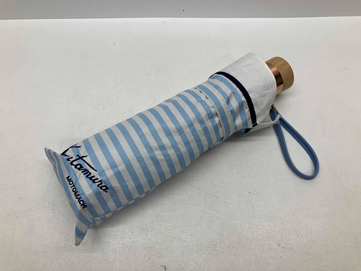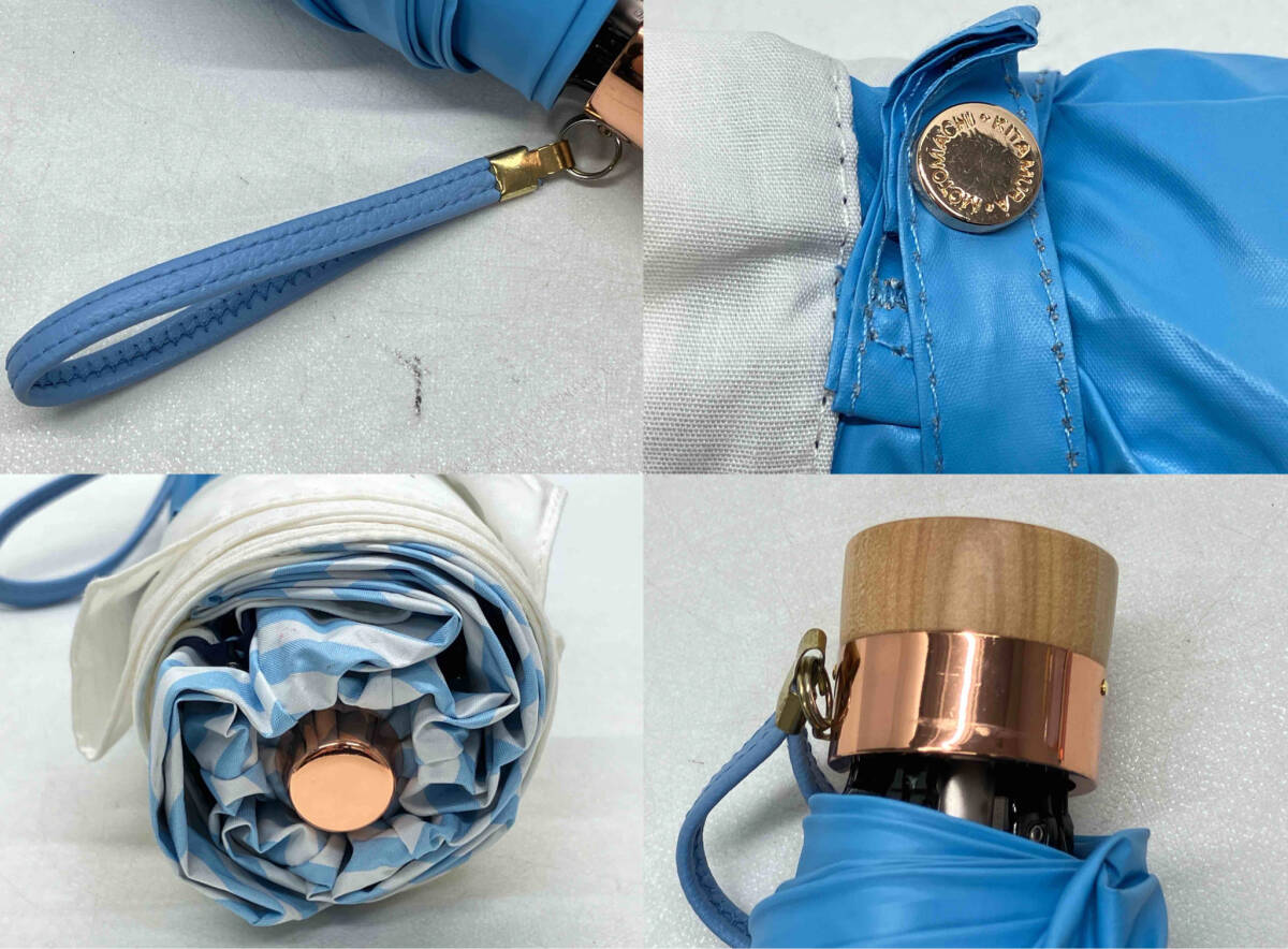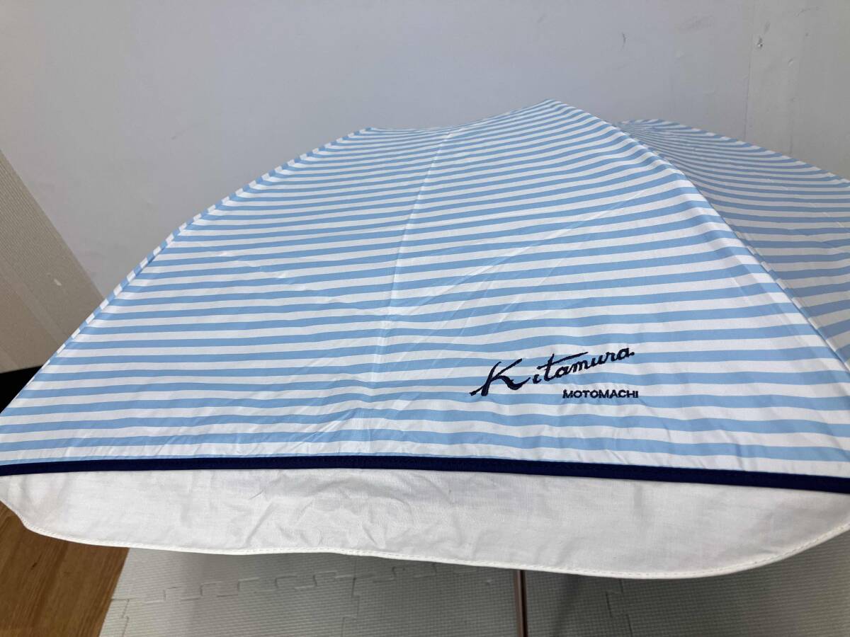 Kitamura 折りたたみ傘 雨傘/日傘 ストライプ 水色 キタムラ MOTOMACHI
