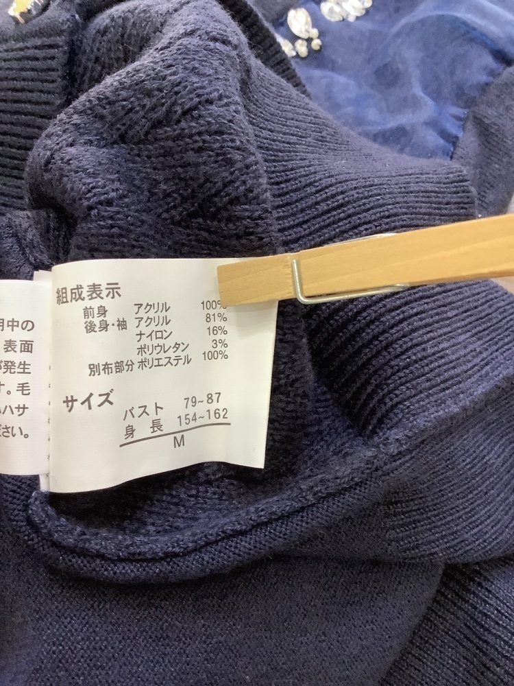 管理番号:43^131055 ミッシュマッシュ ネイビー カーディガン 表示サイズ:M 実寸(参考)