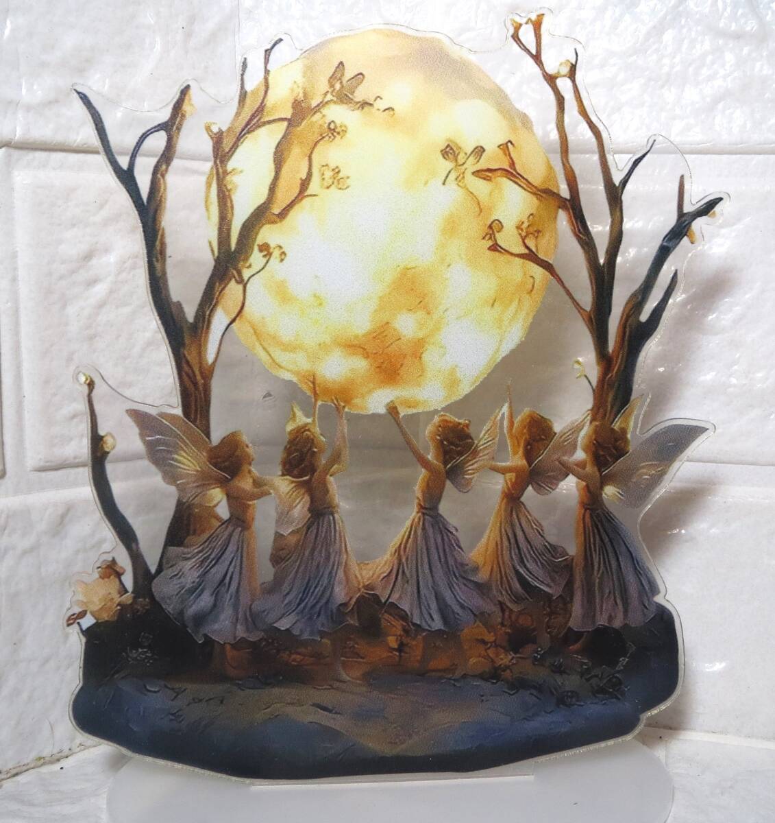 2D・月と妖精・立体技法のアクリルスタンド・出窓に置くと内から外から綺麗に見える・ライトアップしたりサンキャッチャーにも