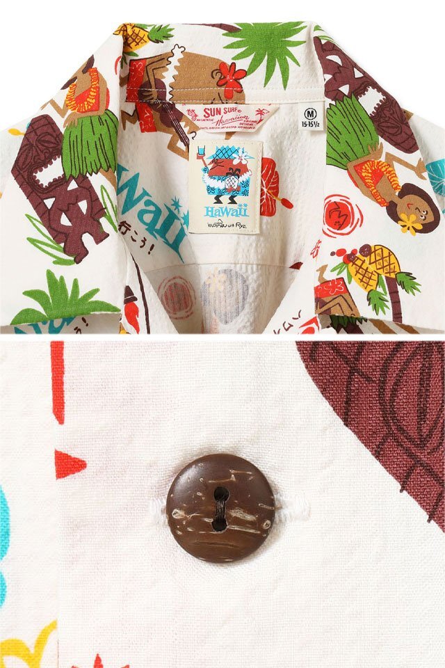 | コットンシアサッカーアロハシャツ「TRIP TO HAWAII」by 柳原良平 with MOOKIE◆SUN SURF SUN-M01521 | ||||||||||||||||||||||||||||||