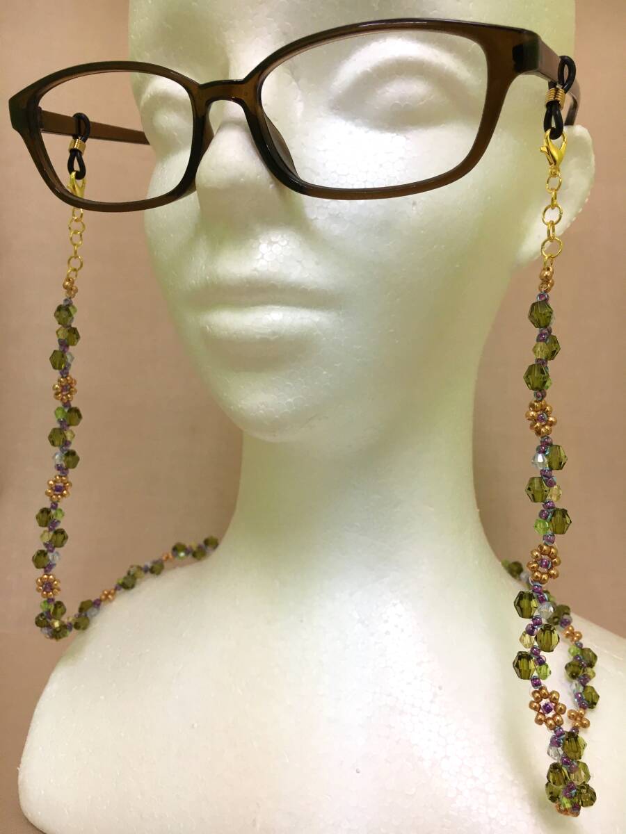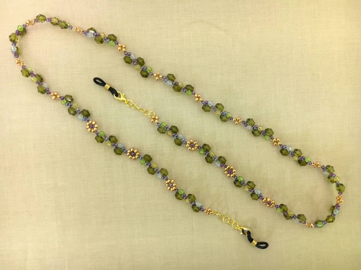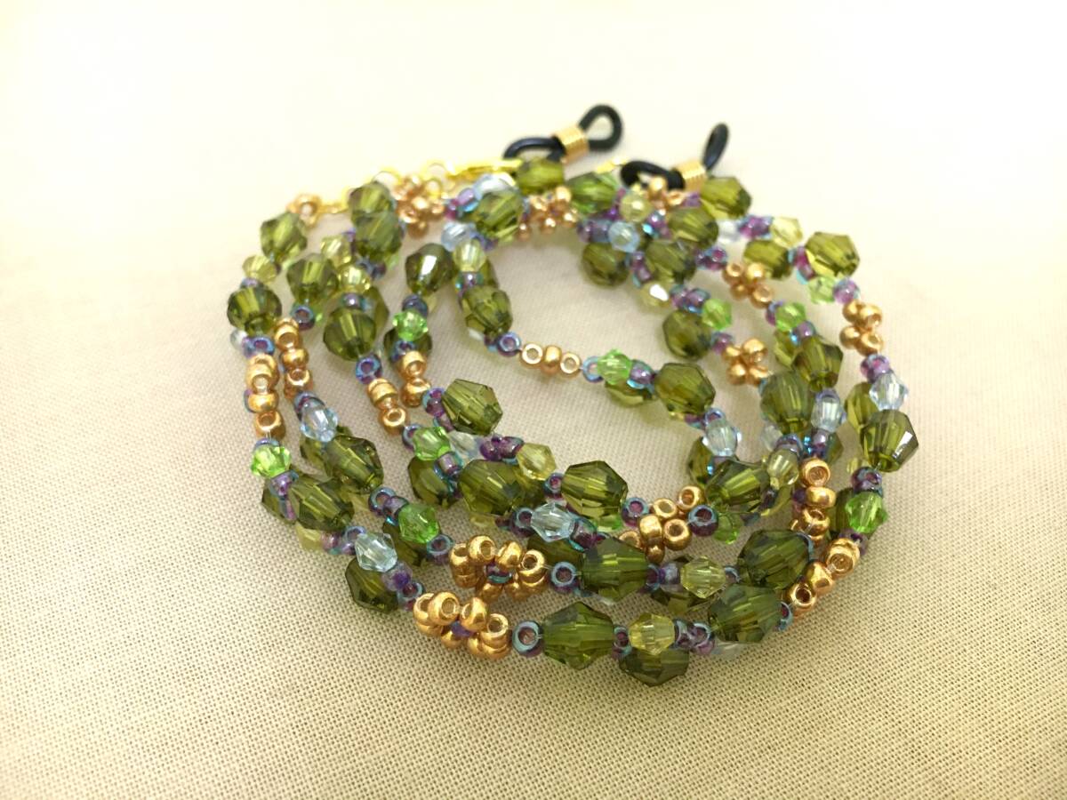 メガネチェーン マスクストラップ ソロバンビーズ グリーン ライムグリーン ハンドメイド 全長68cm A341