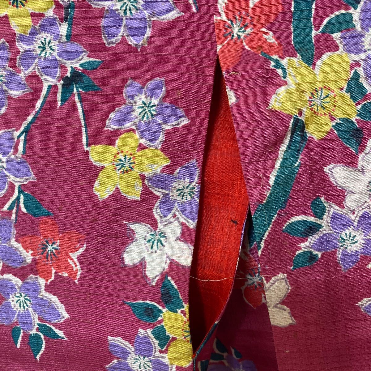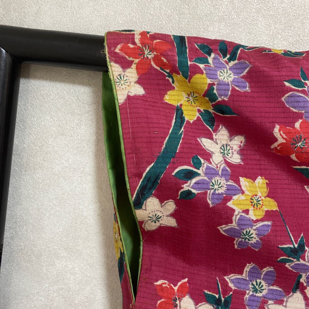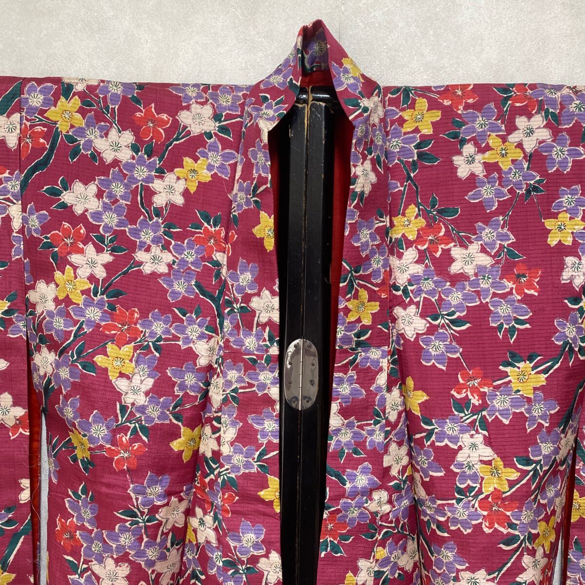 アンティーク 着物 しつけ糸あり 昭和レトロ 大正ロマン モダン リメイク 和洋折衷コーデ 絹 正絹 濃ピンク 花 か30-3w