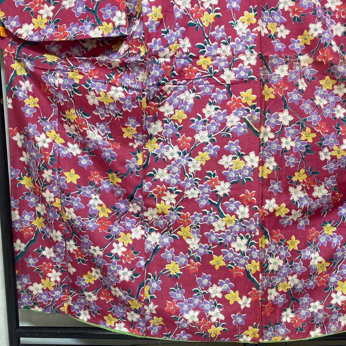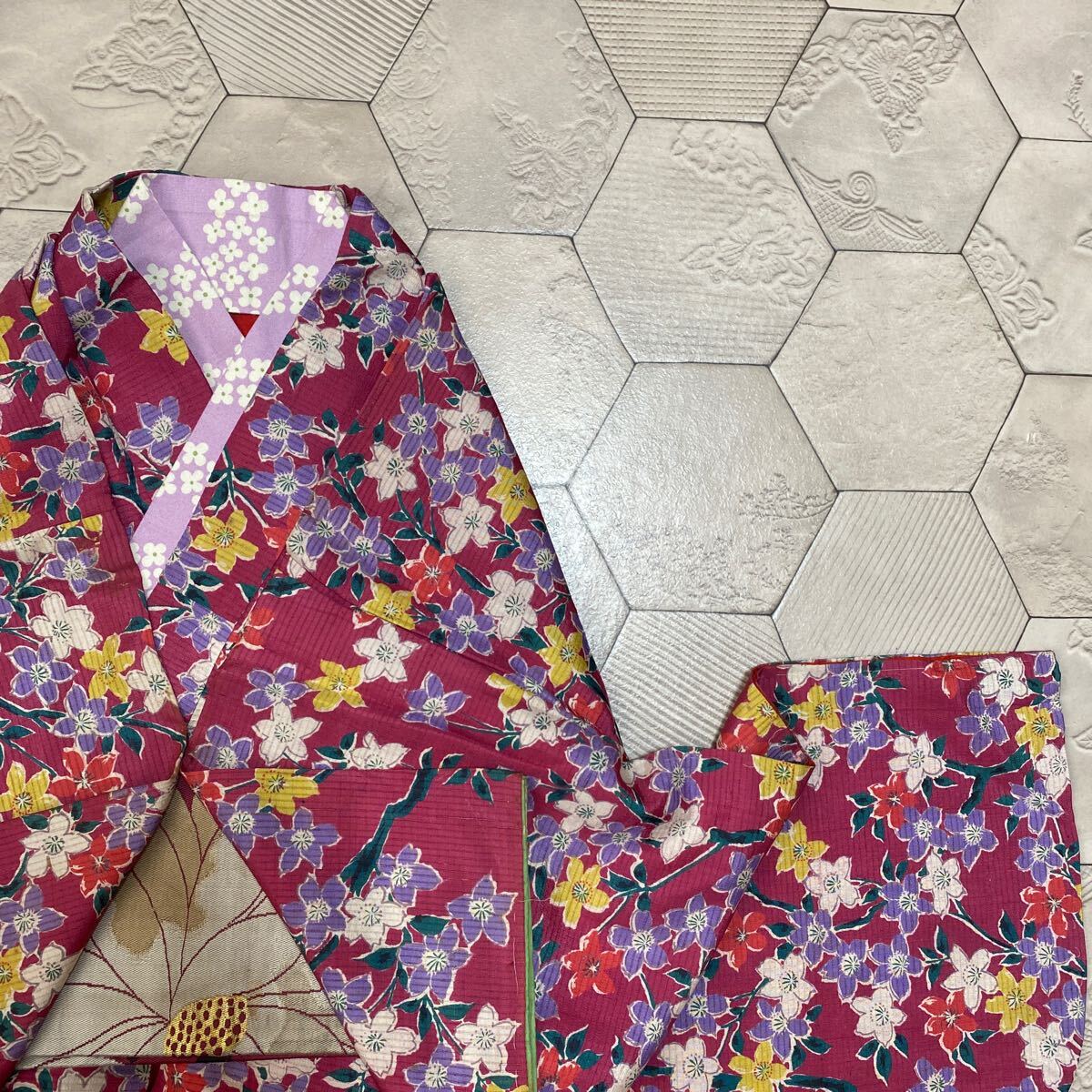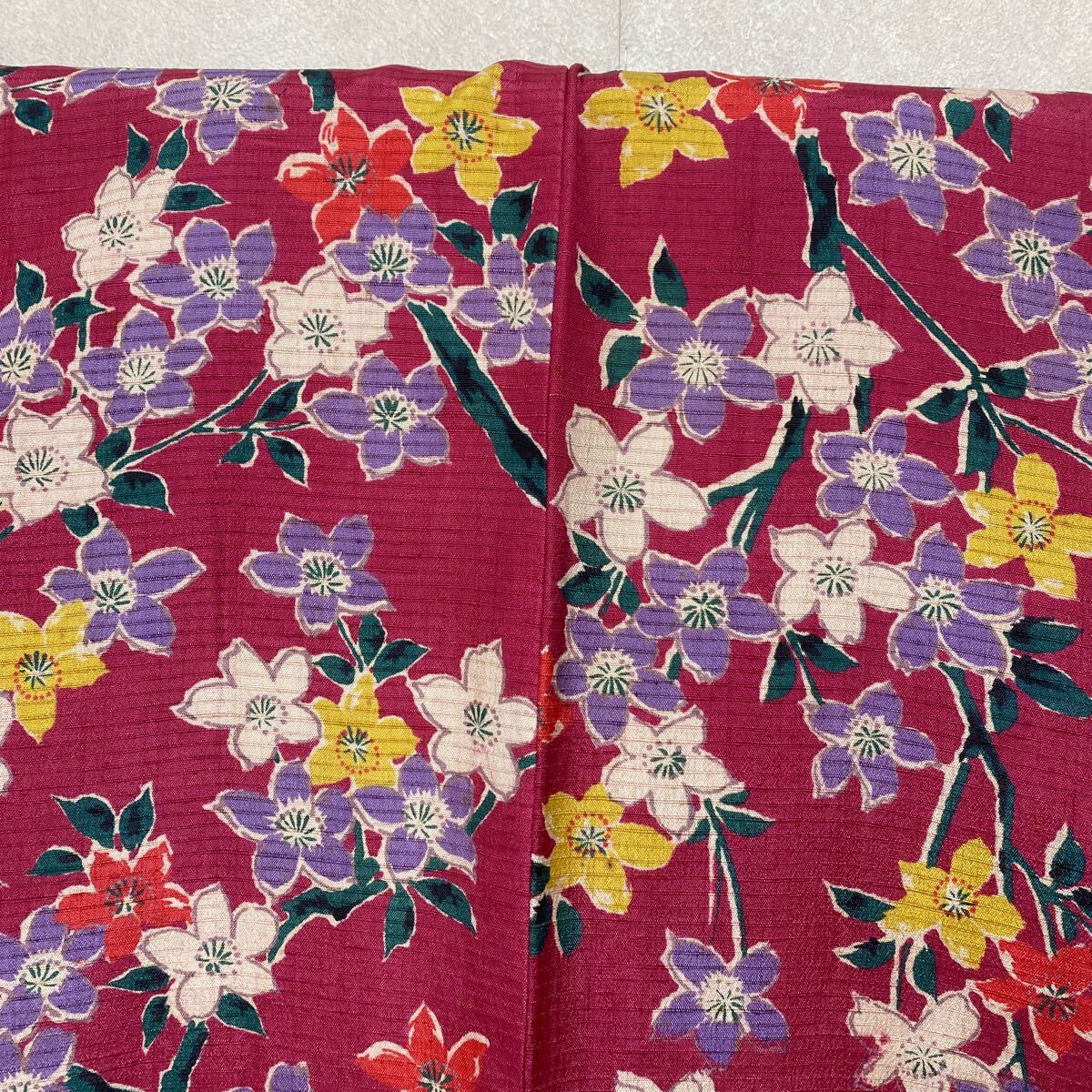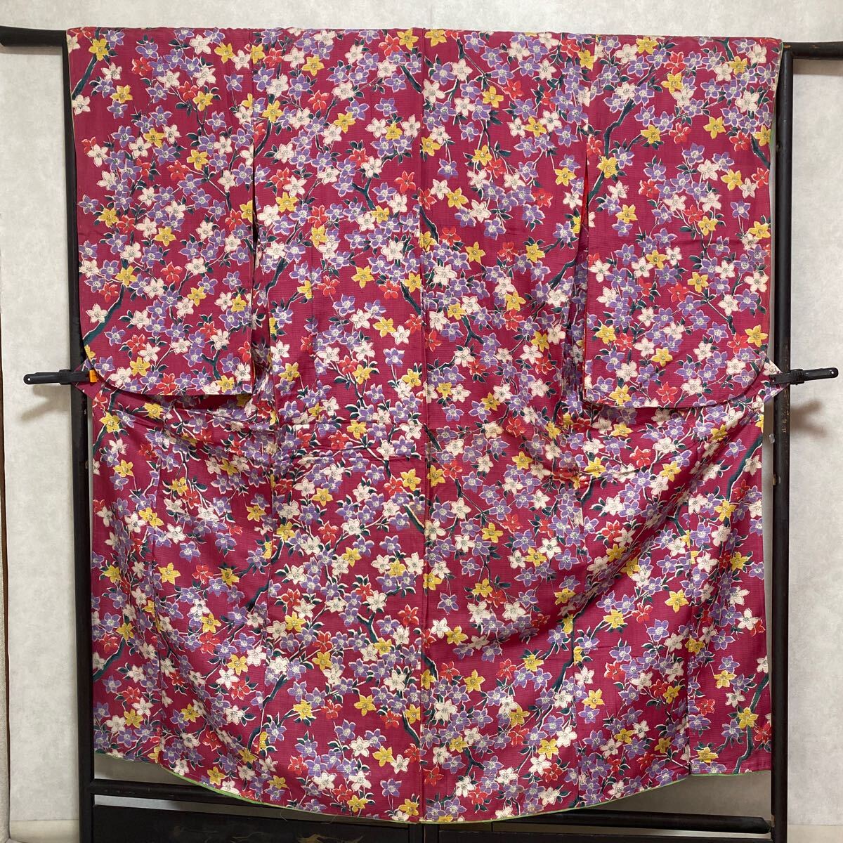 アンティーク 着物 しつけ糸あり 昭和レトロ 大正ロマン モダン リメイク 和洋折衷コーデ 絹 正絹 濃ピンク 花 か30-3w