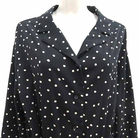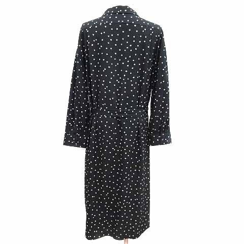 ジーナシス JEANASIS シャツワンピース ロング ウエストマーク ドット 長袖 F 黒 ブラック 白 ホワイト /YK レディース