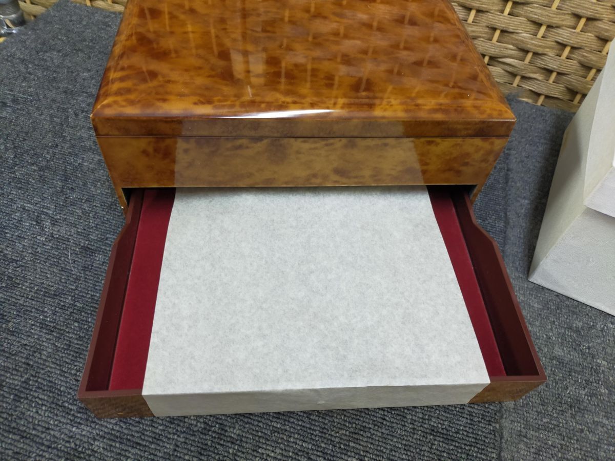 高級感ある艶やかな木目調デザインのジュエリーボックスです。