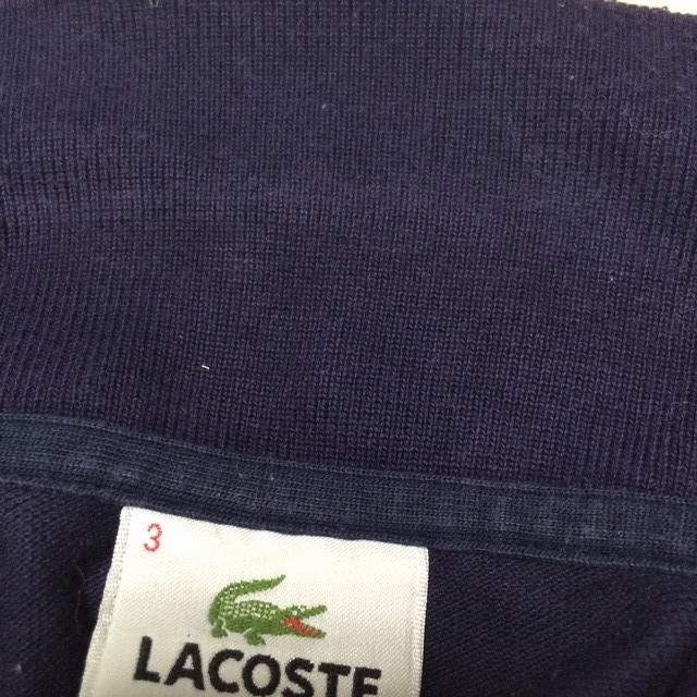 商品説明・状態 | 1.LACOSTEの半袖ポロシャツで、濃紺色 無地 鹿の子生地で出来ています。 2. スロングテールサイドスリット付きデザインで、 ファブリカ製です。 3.使用感は少なく、スレ、目立つ変色、退色はありません。 サイズの合う方いかがですか。 | |