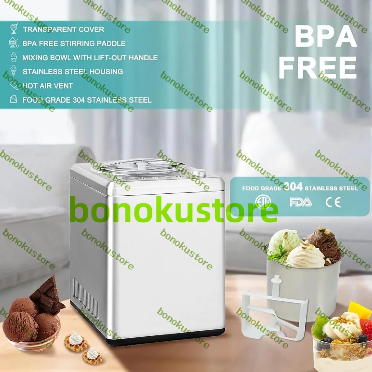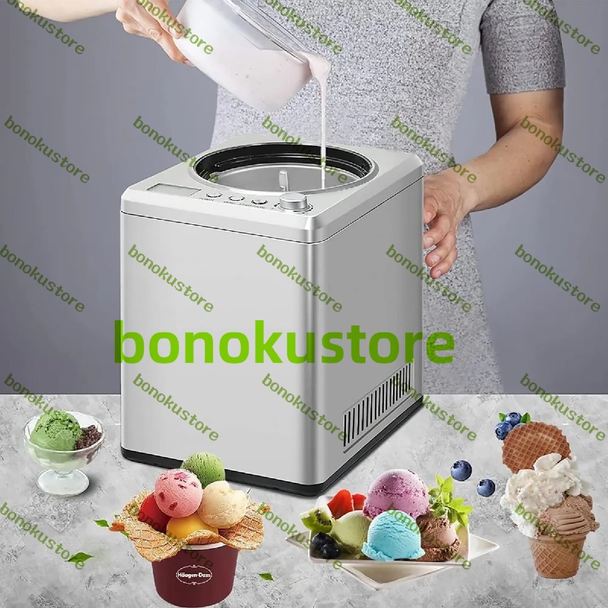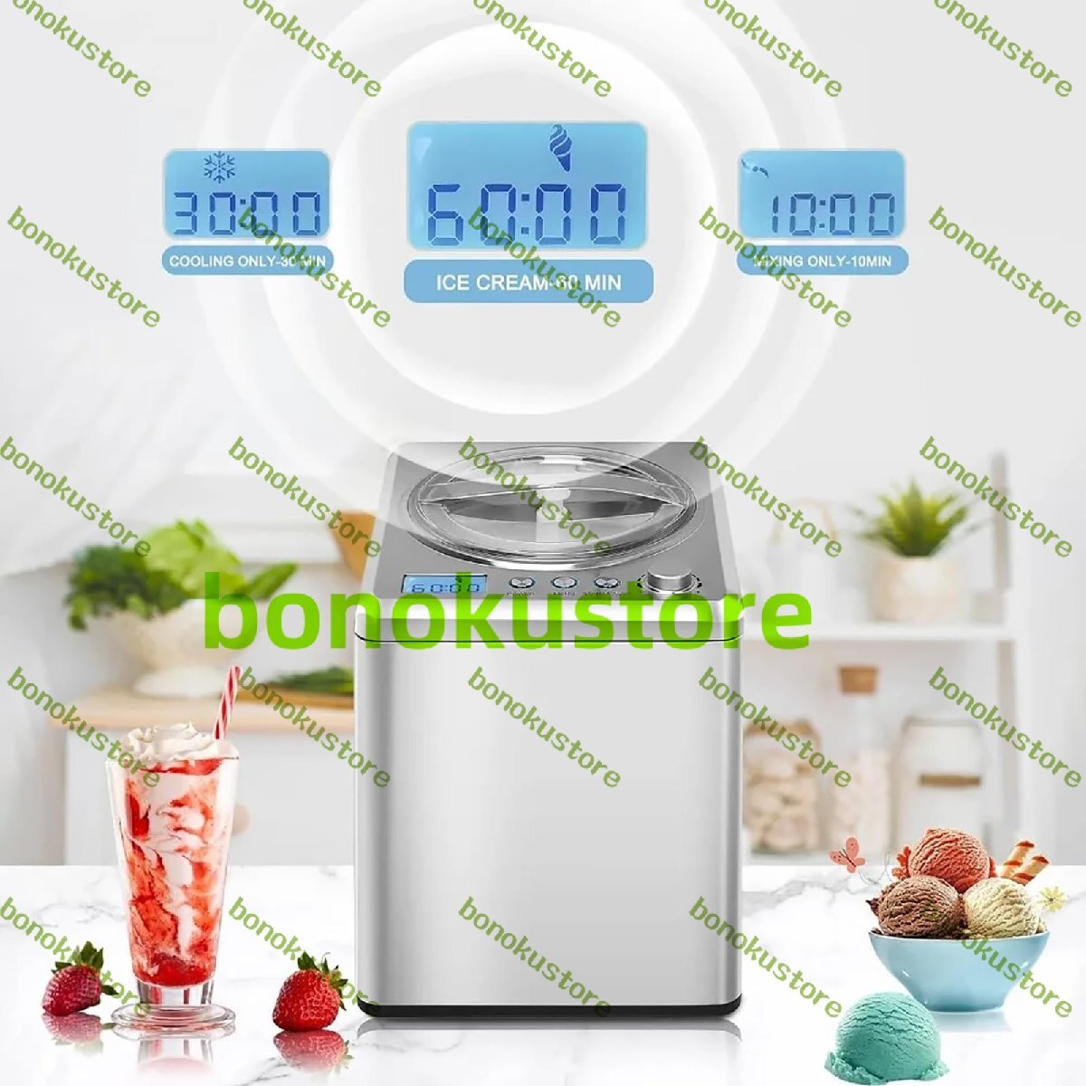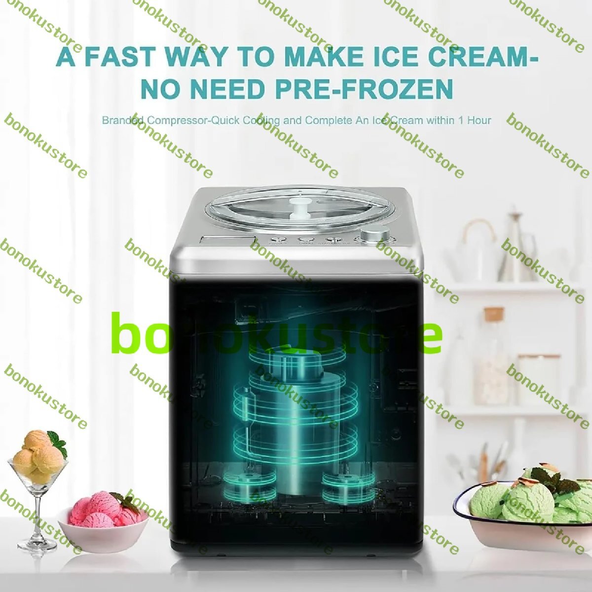アイスクリームメーカー、自家製ソフトアイスクリーム、ジェラート、シャーベットを作るための2L、冷却を続ける、事前冷凍なしのコンプレッサー付き自動アイスクリームマシン