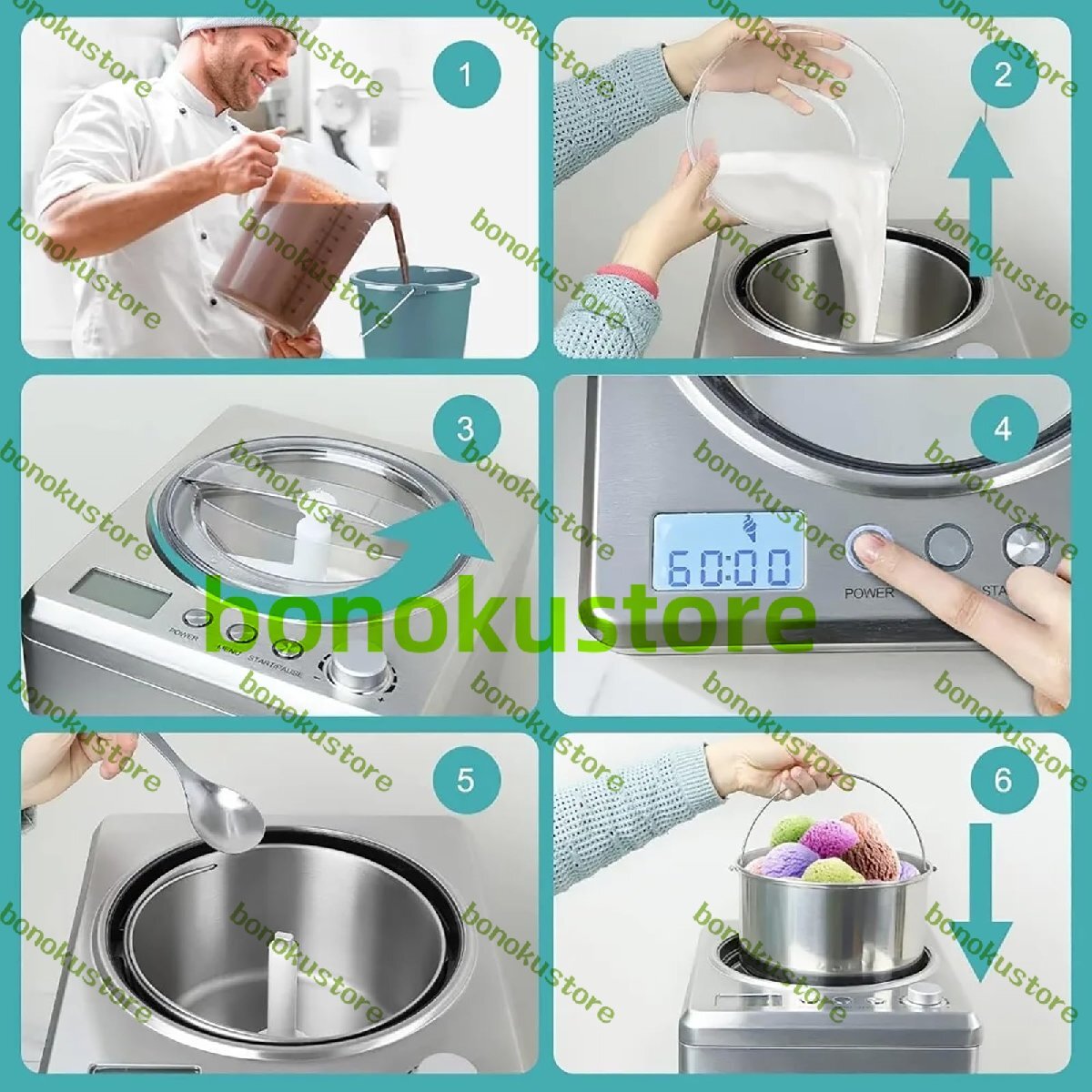 【3つのモード】コンプレッサー付きアイスクリームメーカーには、さまざまなニーズを満たすために、アイスクリームモード、冷蔵モード、撹拌モードの3つの動作モードがあります。「冷蔵モード」モードは、ミックスを注ぐ前にボウルを事前に冷やしたい場合に適しています。