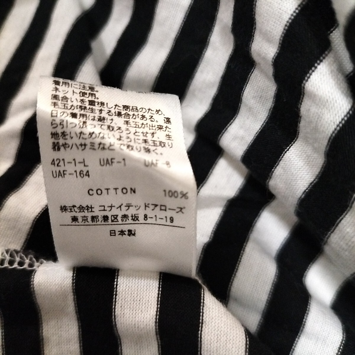 色は白黒ボーダー 素材は綿100% 肩幅40cm胸幅45cm袖丈57cm着丈59cm