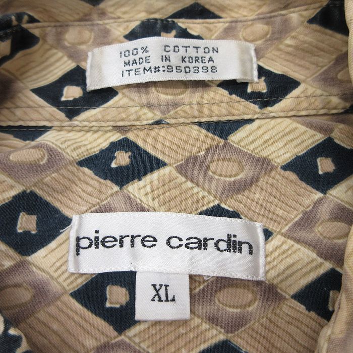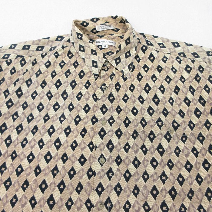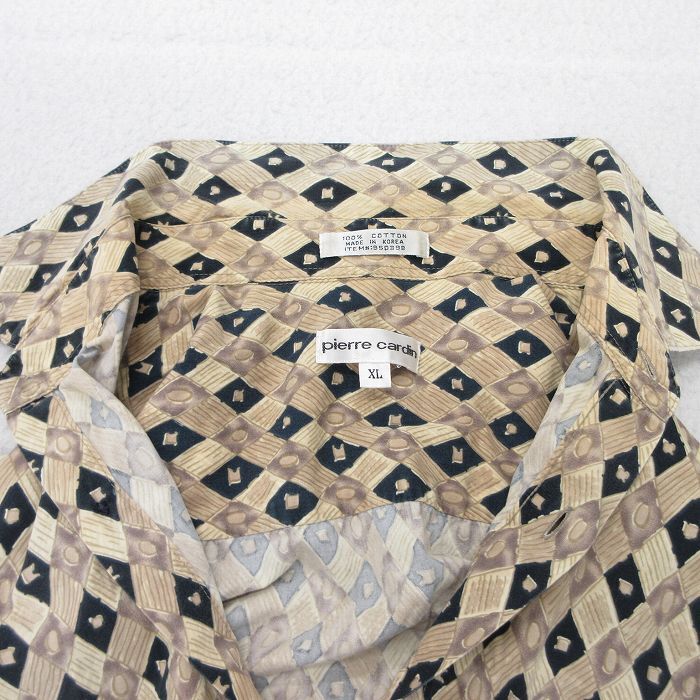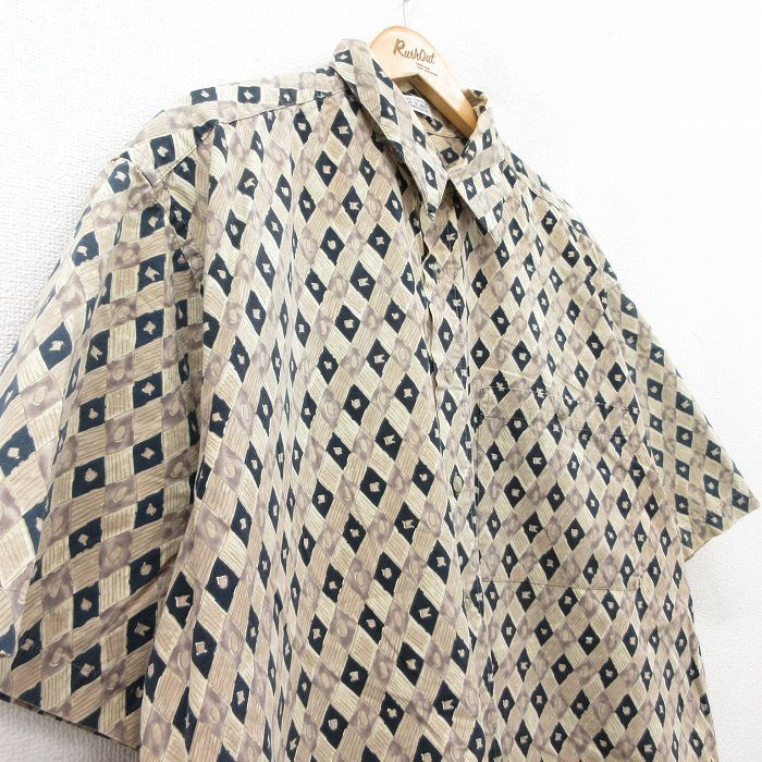 【商品名】 XL★古着 ピエールカルダン 半袖 シャツ メンズ 90年代 90s 総柄 大きいサイズ コットン ベージュ他