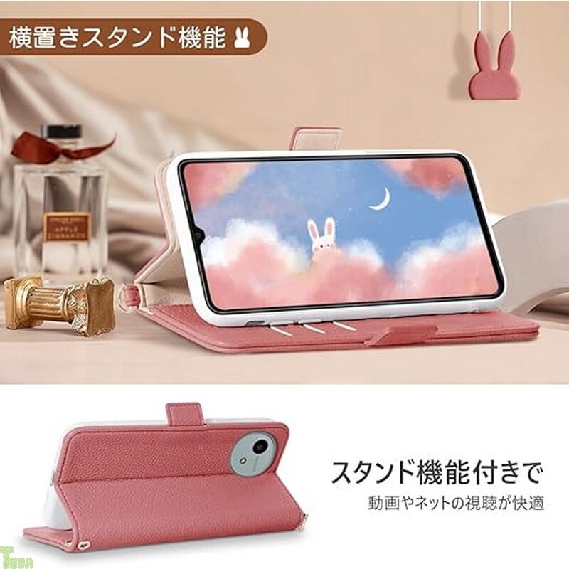 スイカレッド 手帳型 うさぎ 高品質 PUレザー アクオス ウィッシュ Aquos wish5 保護 財布型 スタンド機能 カード収納 ケース カバー