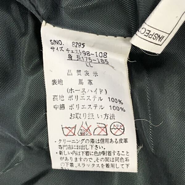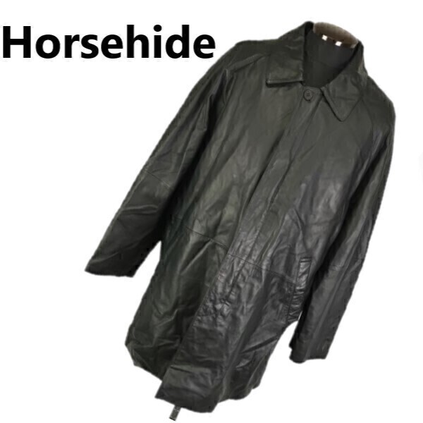 馬革/ホースハイド レザーコート ジャケット メンズLL 黒 THE CASUAL/on the world 送料無料 管NO. W9-089