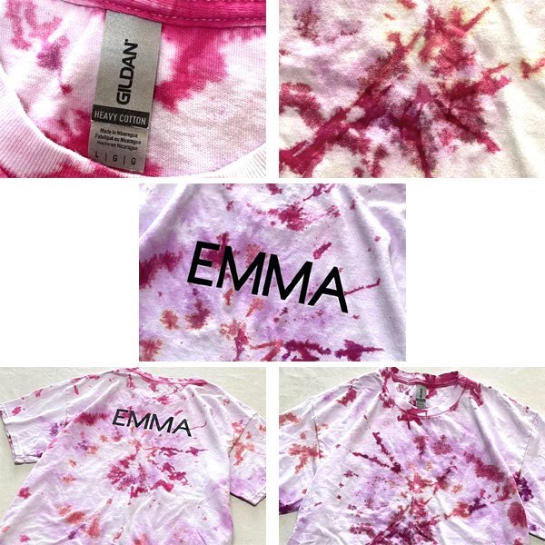 1点物◆白ピンクEMMAタイダイ柄バックプリントTシャツ古着メンズLレディースOKアメカジ90sストリートスポーツブランドポロシャツXL349224