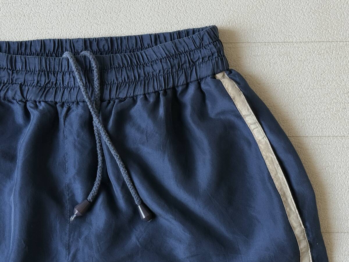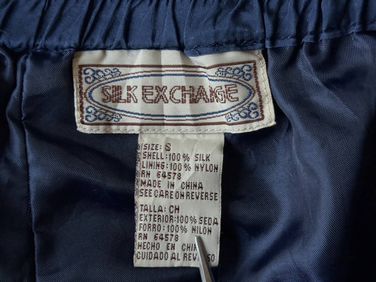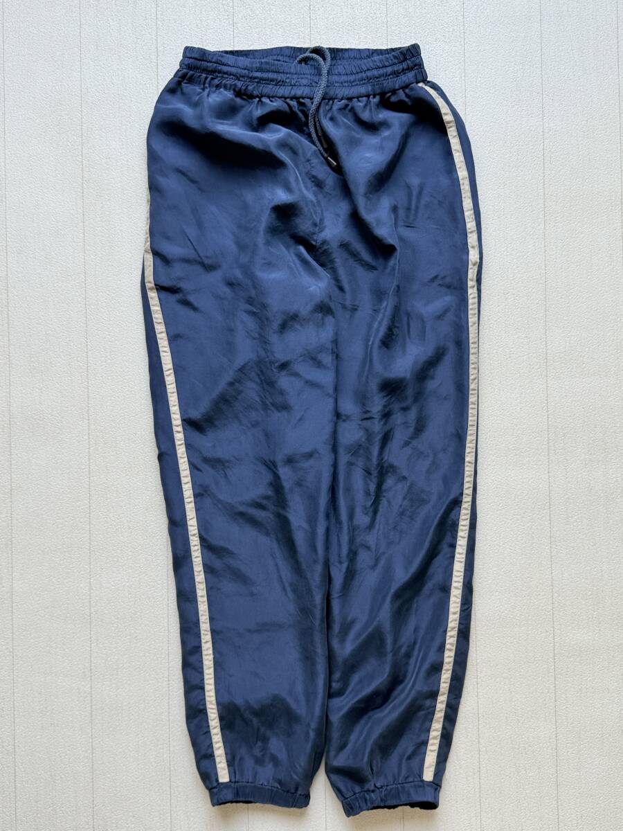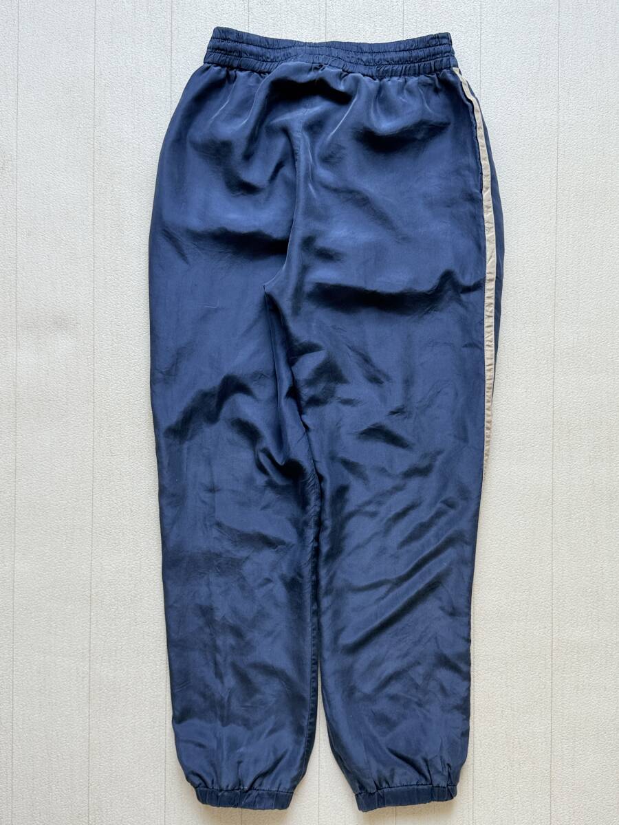 ☆送料無料☆ SILK EXCHANGE USA直輸入 古着 シルク ロングパンツ トラックパンツ メンズ S ネイビー ボトムス 中古 即決