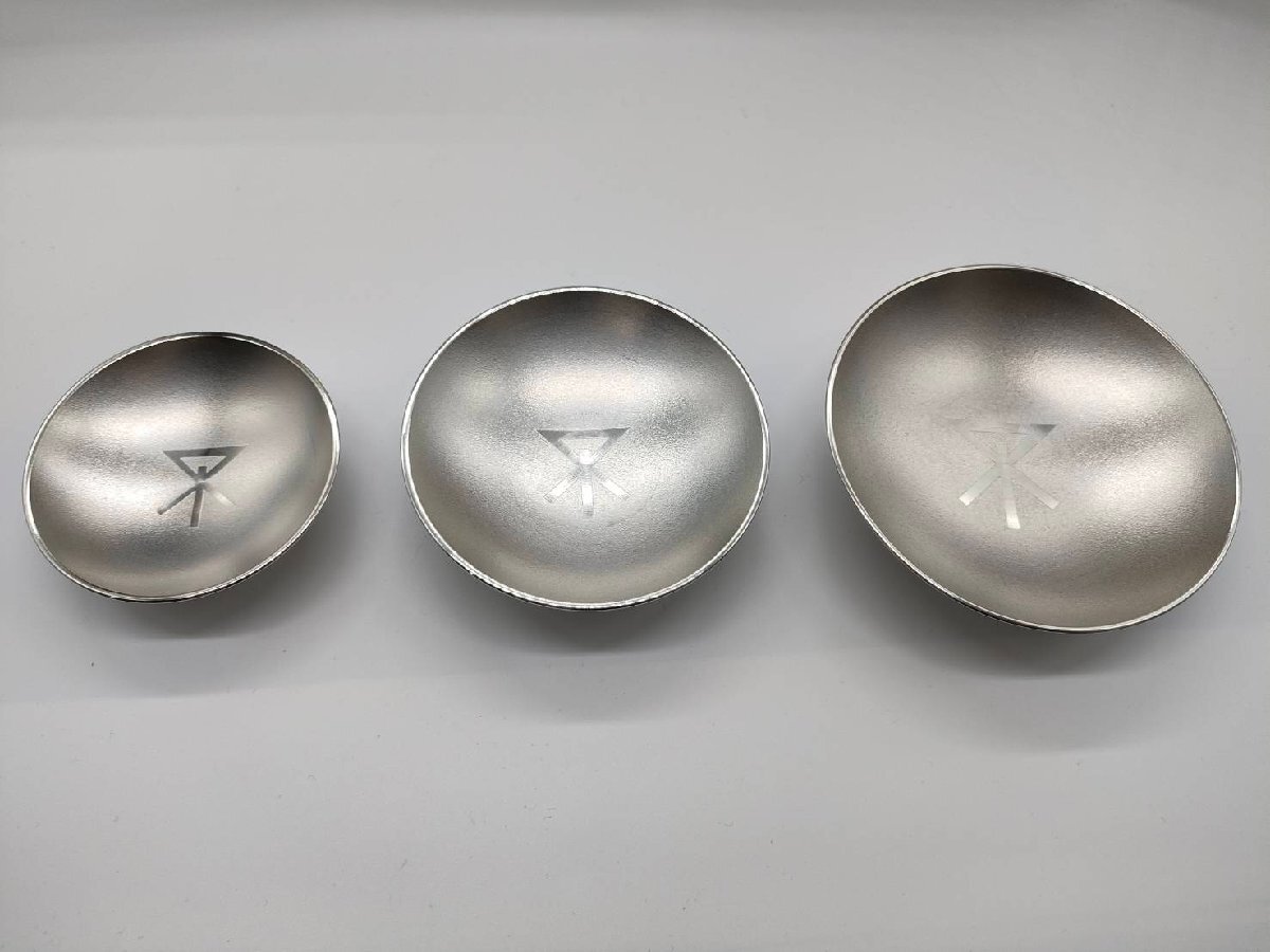 日本の伝統技術が息づく、錫製の御盃三ツ重揃(大・中・小)を出品いたします。