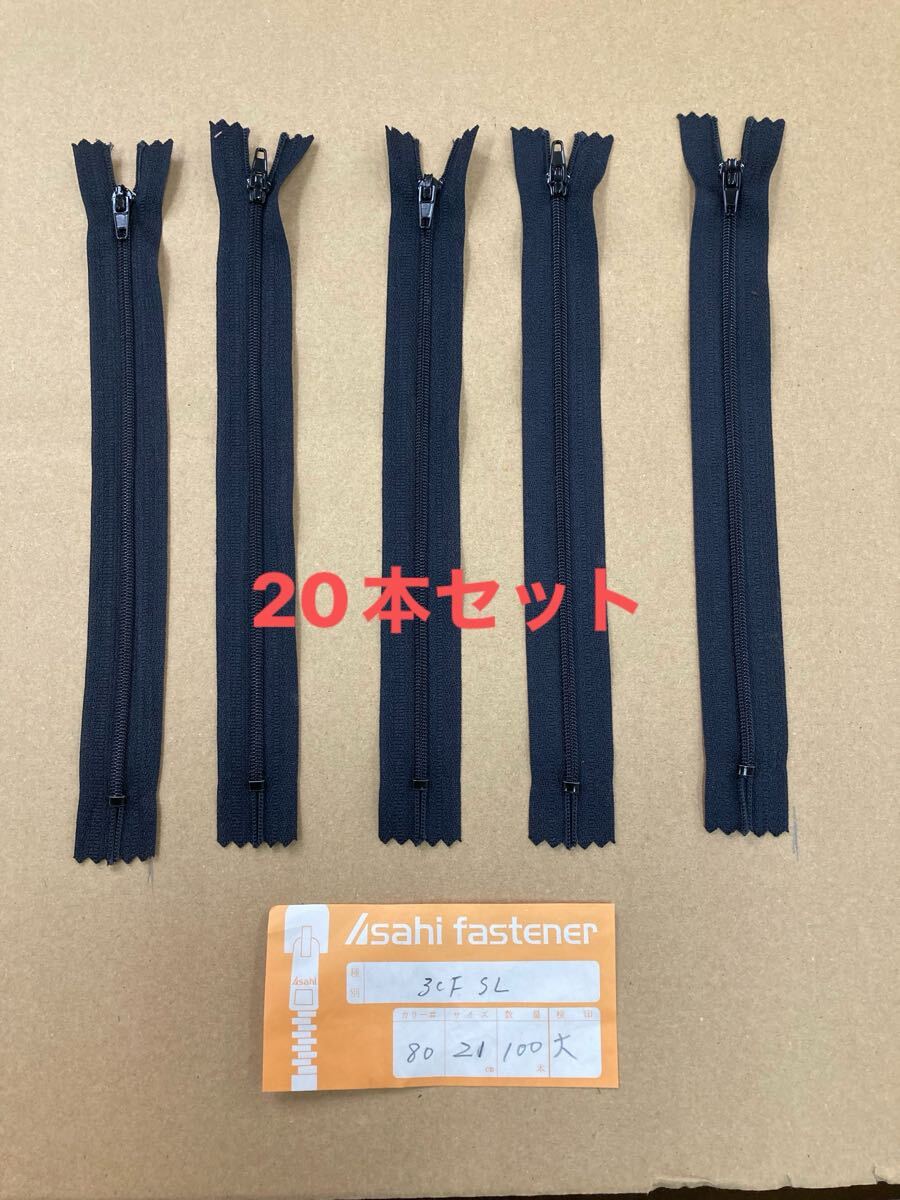 黒の21cmスライダー付きファスナー20本セット。
