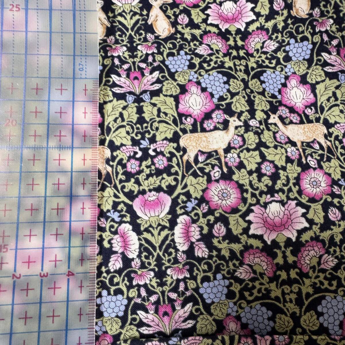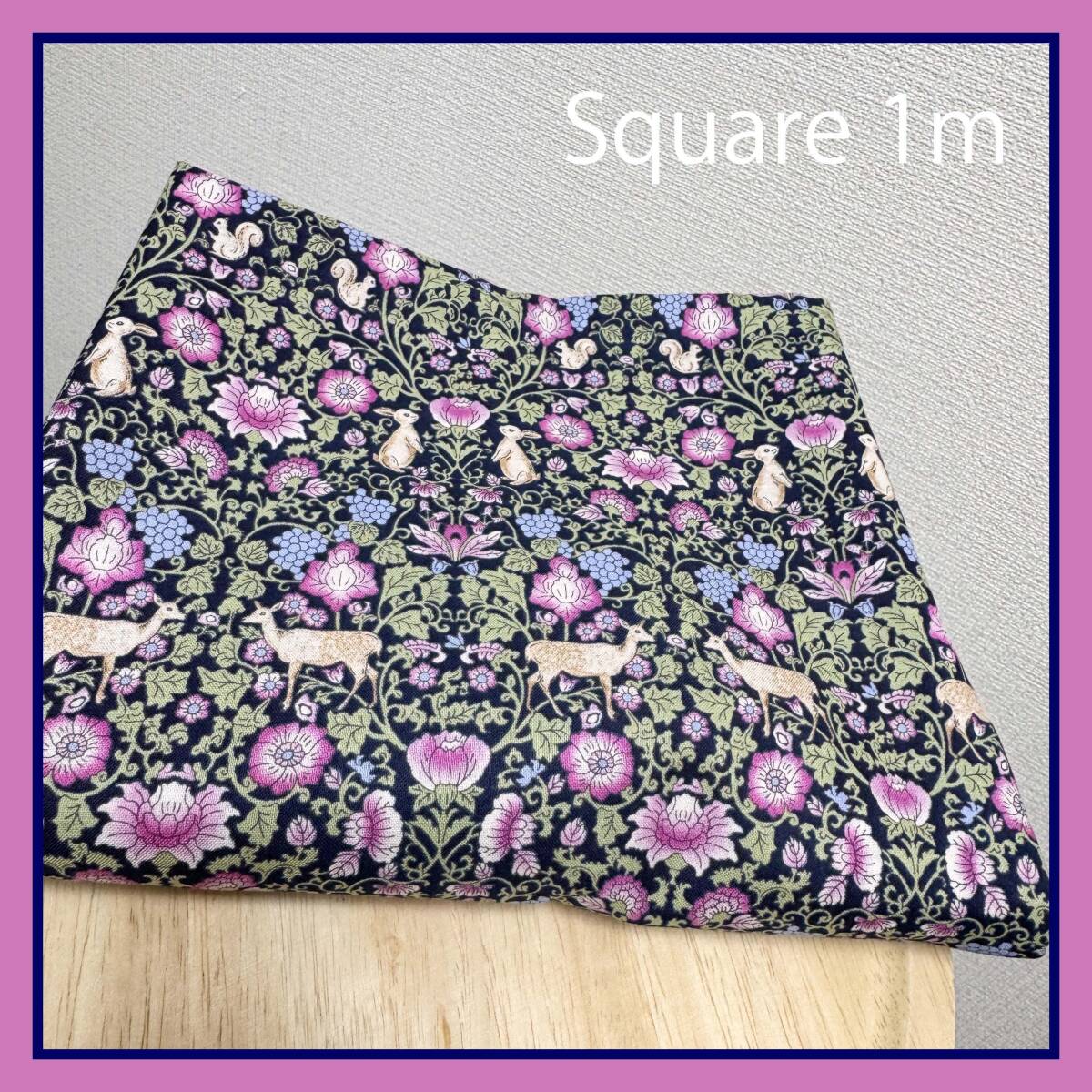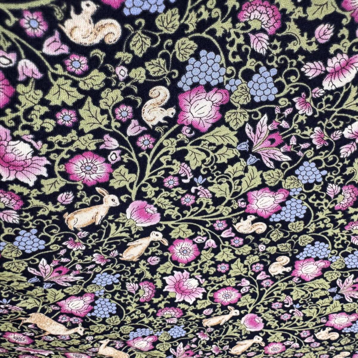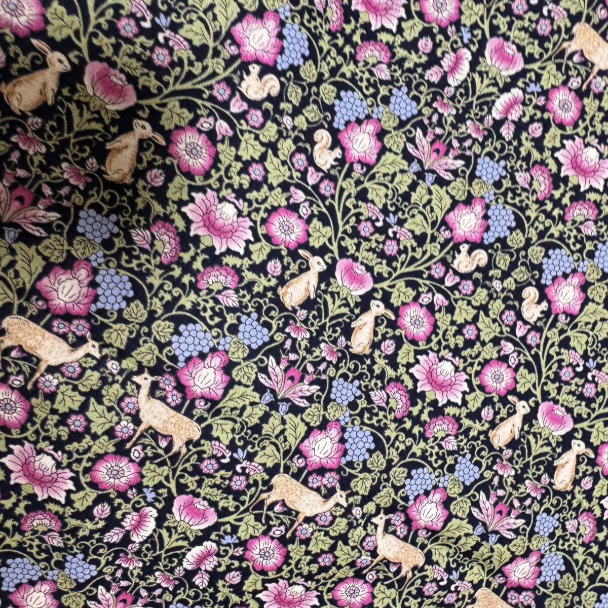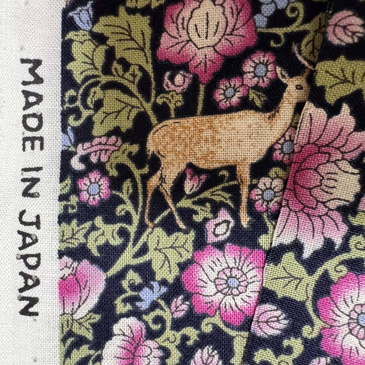 1mウサギ鹿のアンティーク風スケア生地★森の動物ダマスク植物はぎれ布ネイビーP