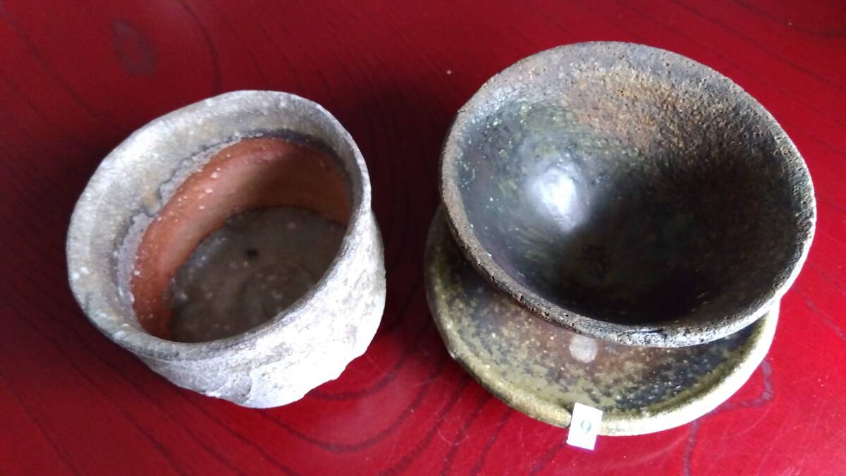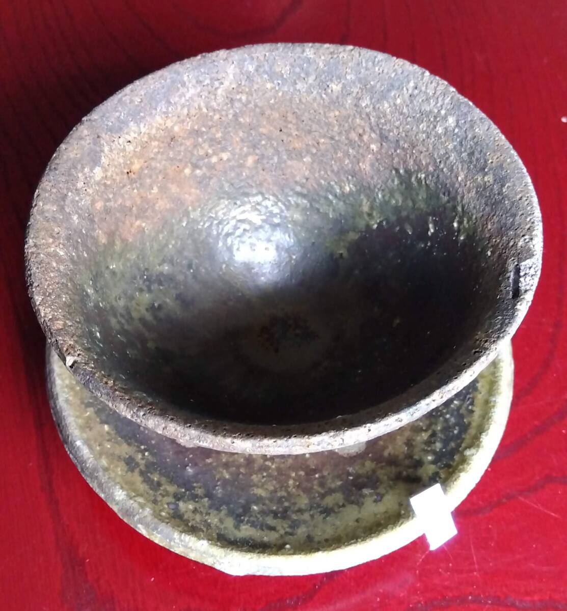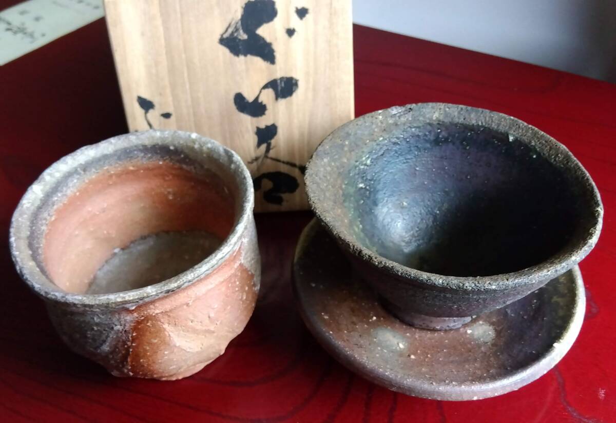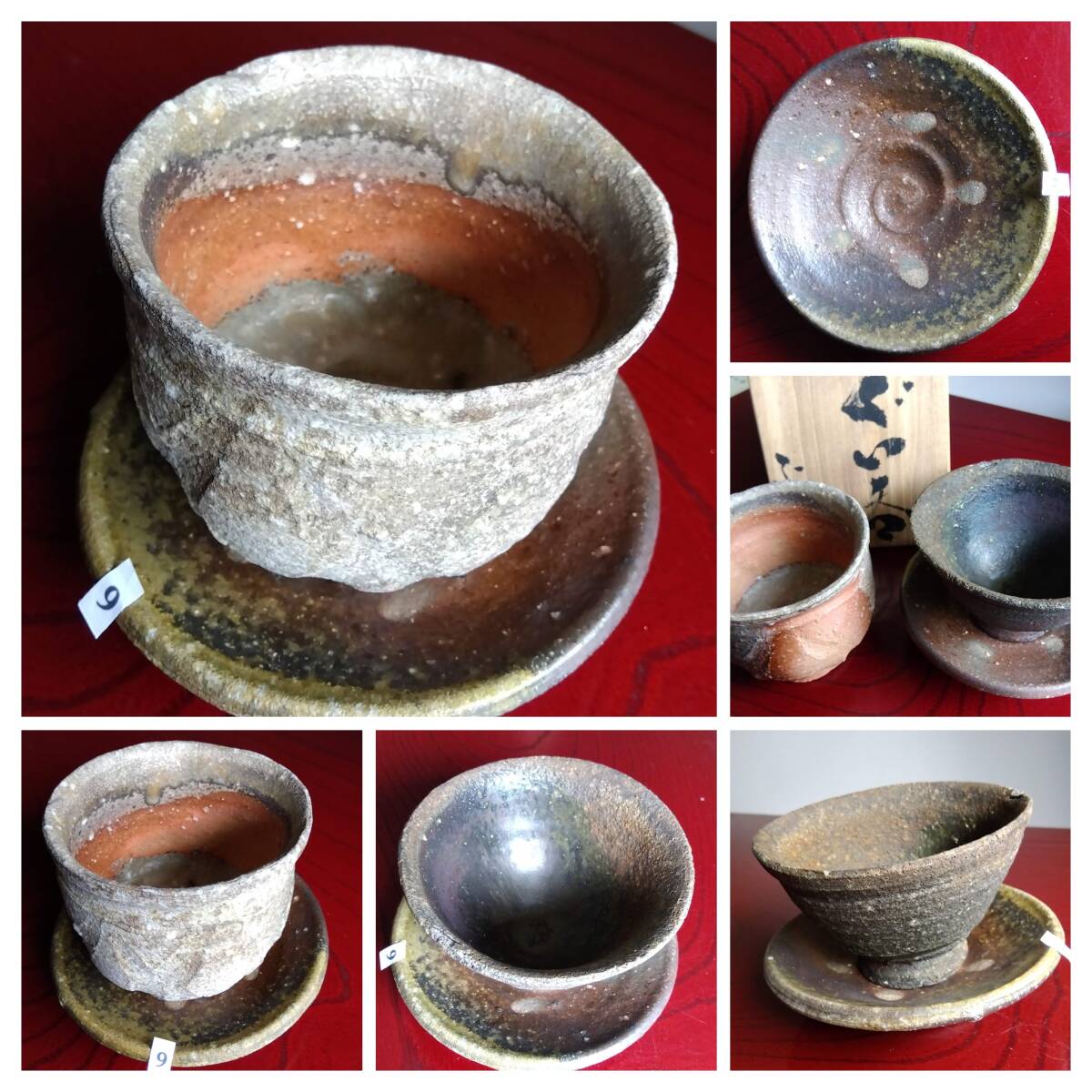 越前焼の名工 白越不朝(塩越窯)自然灰釉の究極美が迸る逸品 大小のぐい呑み/湯呑2種及び茶托三点セット No:9 穴釜陶芸美に全霊を捧げられている白越不朝師が亘ずね感謝されている薪と炎の神様がもたらしてくれた自然灰釉の究極の逸品です。そのおかげで師の「至高の技」が心和む「究極窯変美」に焼き上がり、器に浮き出る自然釉は越前焼魅力の世界を再確認させてくれます。 越前陶土「青ねば・赤べと・太古土」を活かす形で作られ、温かみのある土色に自然釉が組み合わさった魅力的な作品です。質素ながら極めて奥深い風合い 無限の幽玄美/崇高美おも感じさせる心和む自然灰釉美 技巧的表現をも還元焼成させる際立つ(陶土)が表す独特の質感自然釉(しぜんゆう)が織りなす作品群です。 師がこれらの作品群に使用されている技法【「ねじ立て」「輪積み形成」「しのぎ」面取り技法を駆使しシンプルで上品さと荒々しさを併せ持つ日本の伝統的な装飾技法】が見事に表現されています。 また師の作品に於いては 口縁(こうえん)口造(くちづくり)が薄く、特にほんの少し外側に反って製作されている為 大変口当たりがよく、すっと口の中に入ってきます。 器は、素朴でありながらもモダンな印象を持ち、和洋どちらにも馴染みます。 また窯の中の温度や置かれた場所によってまったく異なる模様や色合いが出ていますので、薪と炎の神様が生み出した偶然の景色を楽しみ 器そのものを育てる事を楽しんで下さい。 全面をおおう自然灰釉美の茶托はぐいみ/湯セットを一つに溶け合う幽玄美の世界へいざないます。セットNo:9 サイズ: ぐいみ/湯 小 口径98/104mm高さ64/68mm高台12mmX45mm 大 口径87/90mm高さ79/83mm高台12mmX55mm 茶托サイズ: 口径118mm高さ29/30mm 高台径60mm厚み10mm 出品者覧の【出品中の商品を見る】より 他にも多数の作品を出しておりますので御参照してください。