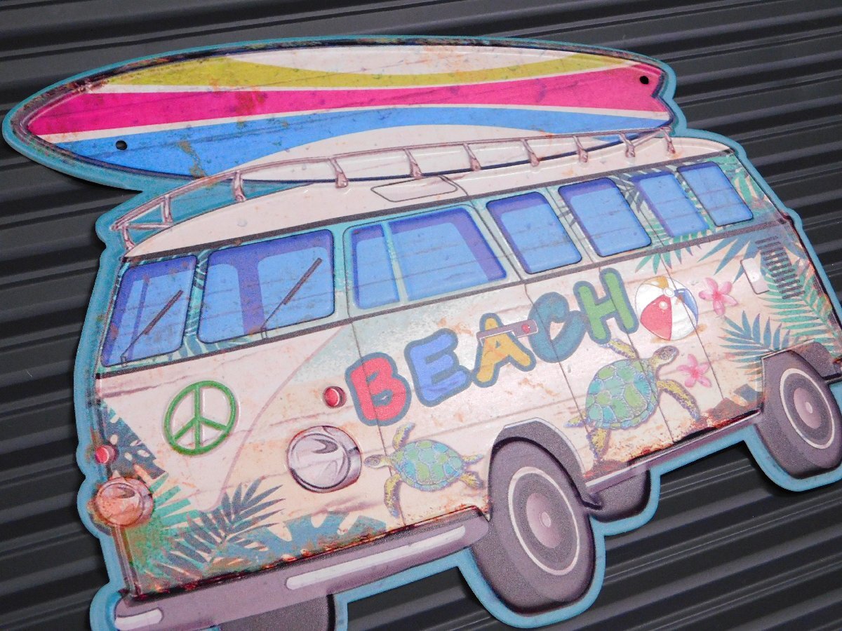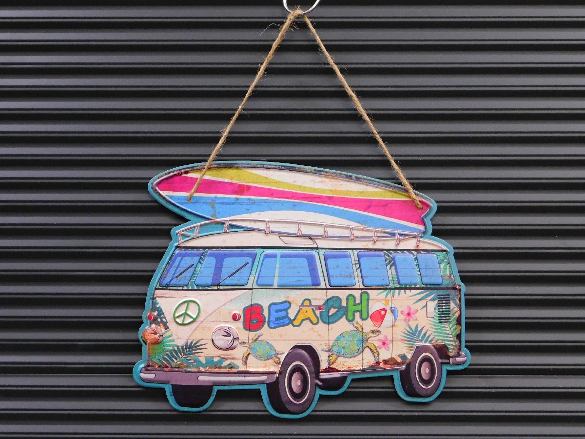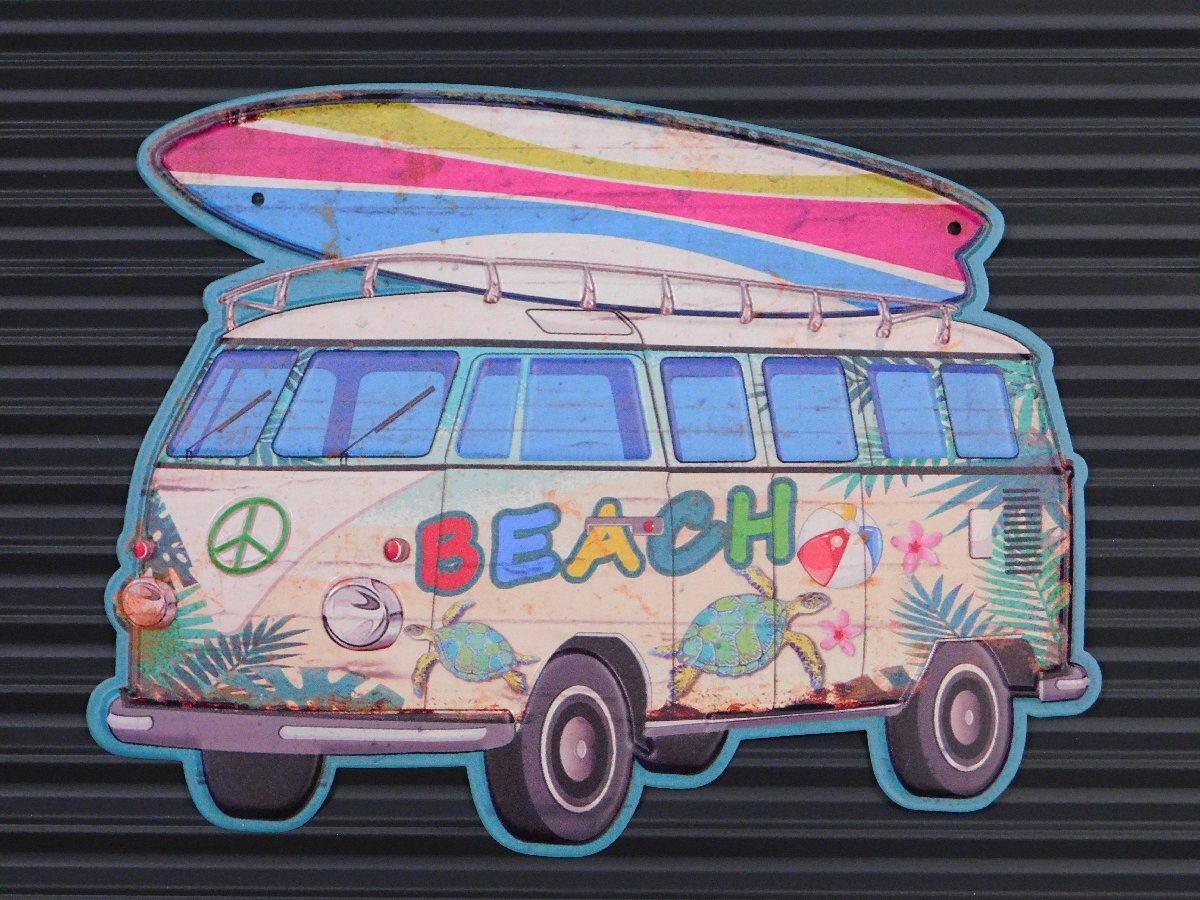 ◆送料\185◆【BEACH Wagon】※《アンティークエンボスプレート》 ワーゲンバス アメリカン雑貨 メタルサイン エンボス看板 ブリキ看