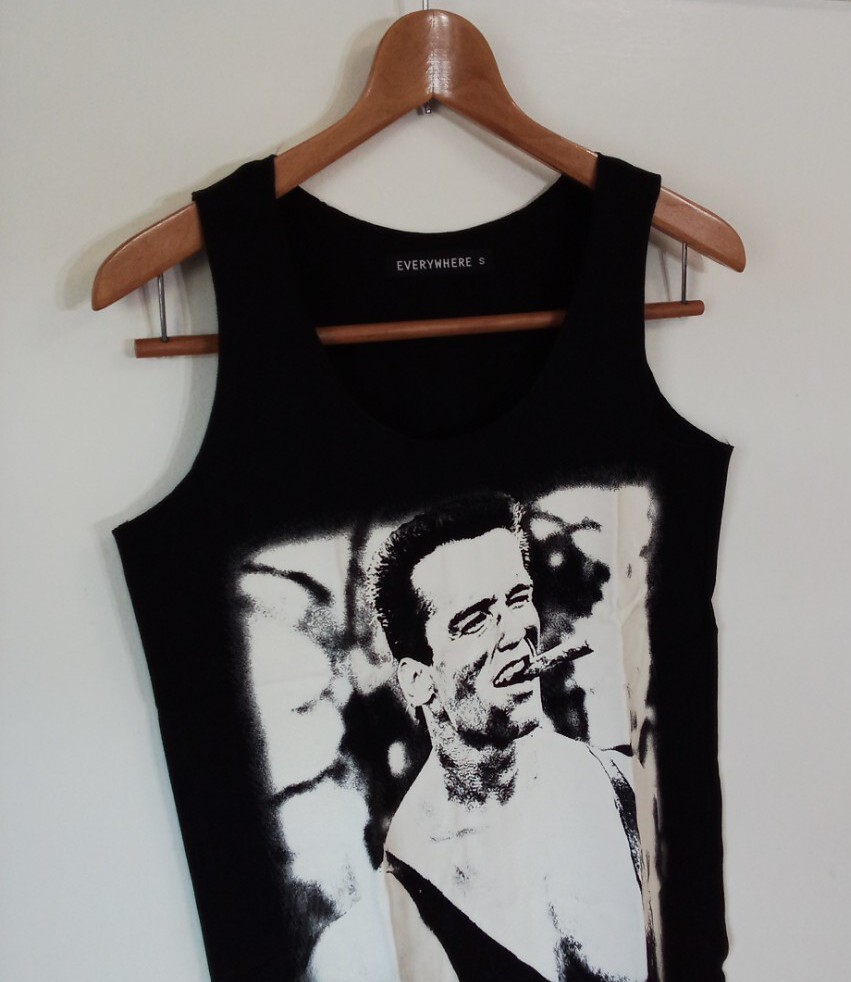 ボディビルダー、俳優、政治家の「アーノルド・シュワルツェネッガー」のタンクトップになります。マッチョ鏡、シュワちゃんのタンクトップに葉巻のお姿。
