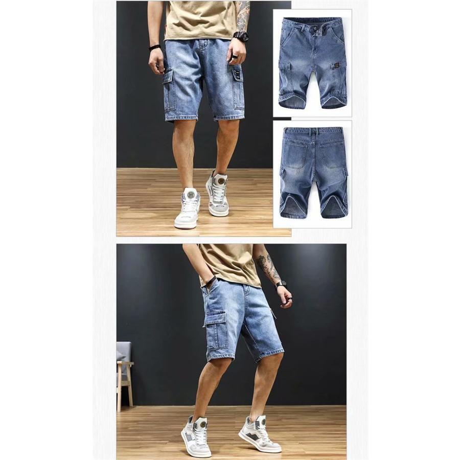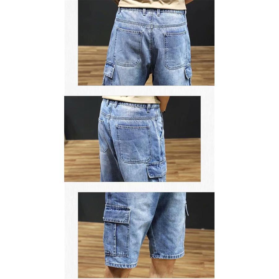 夏服 カジュアル デニムパンツ ハーフパンツ メンズ 薄め 体型カバー 旅行 砂浜 通気性 ゆったり ブルー 2XL