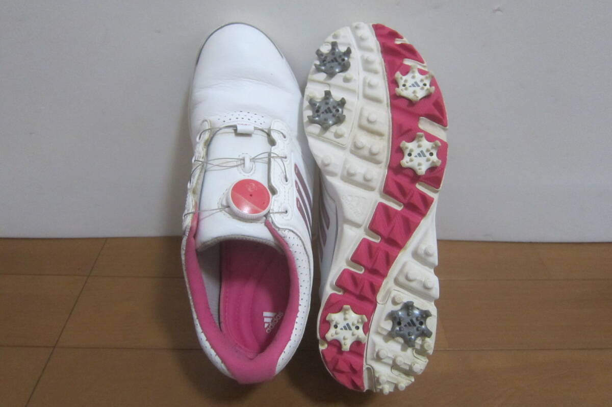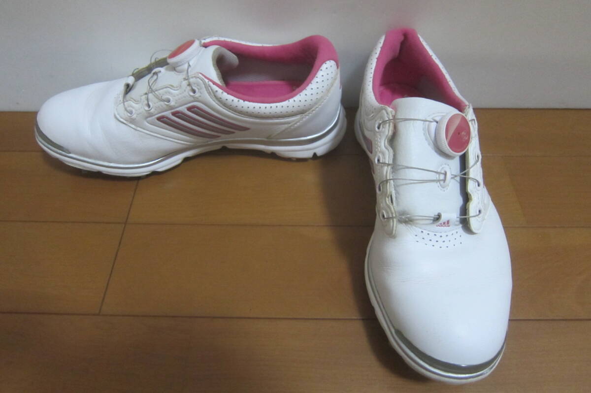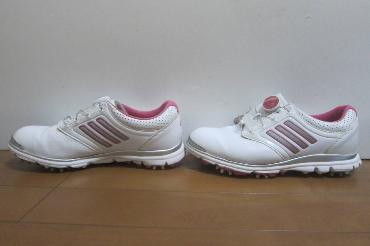 adidas アディダス Q46660 ゴルフ スパイクシューズ ダイヤル式 白×ピンク 23㎝ O2506D