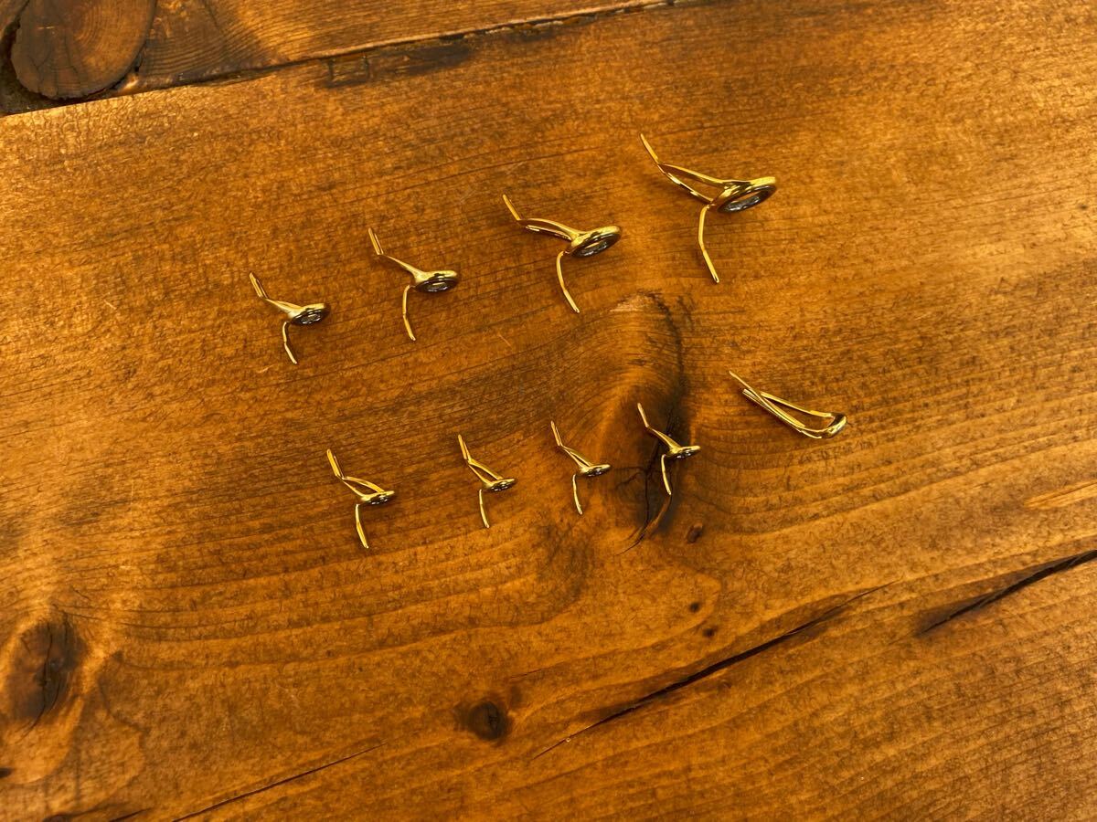 ロッドの補修用、ロッドビルディング用の縛り式KWガイド8個とMNトップガイド2.0mmのセットです。