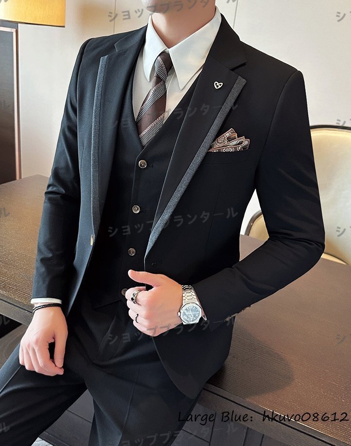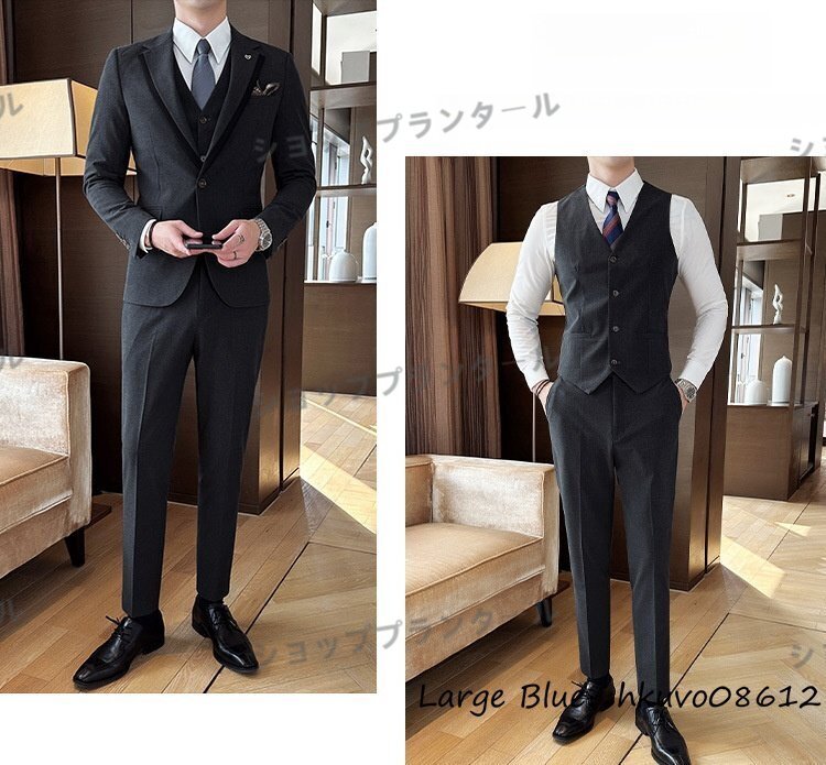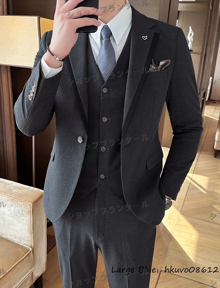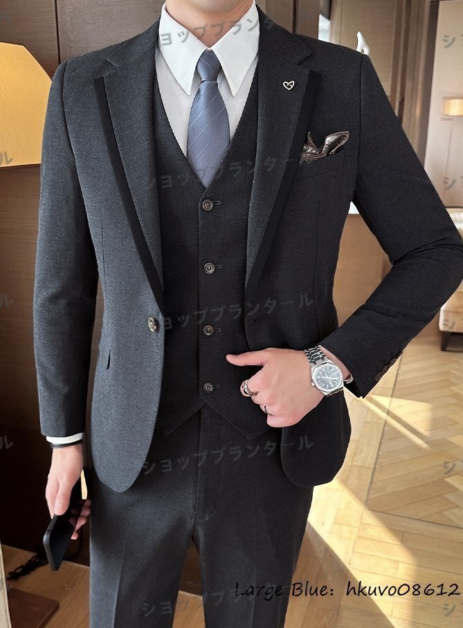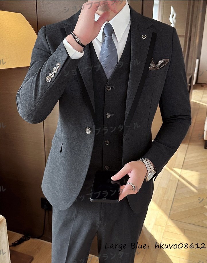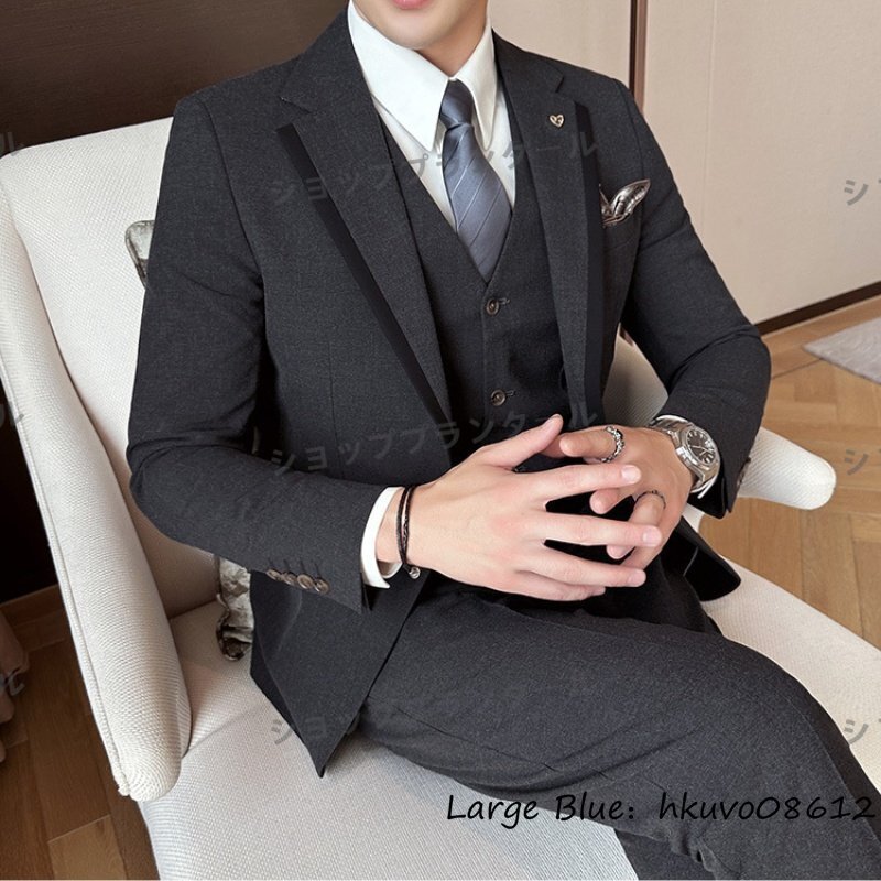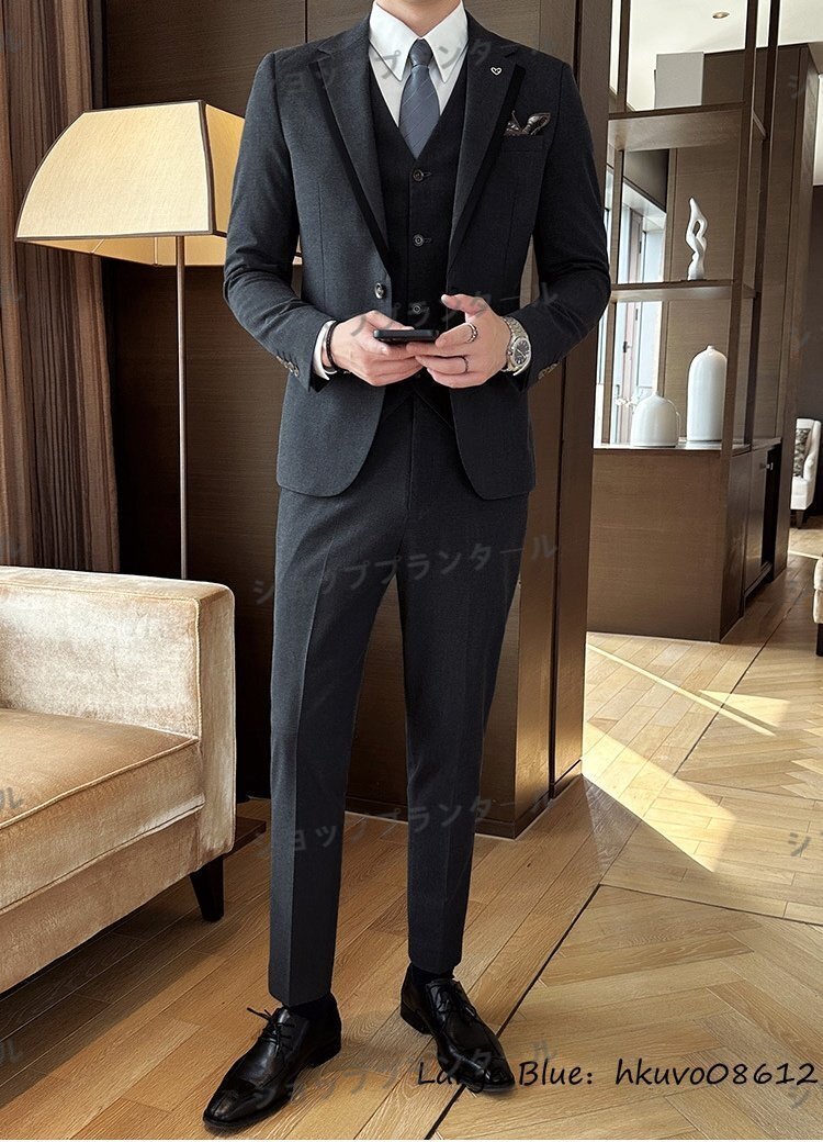 新品■スリーピース スーツセット 3点セット ビジネススーツ シングルスーツ 高級 無地 スリム 一つボタン 紳士服 結婚式 ダークグレー 4XL