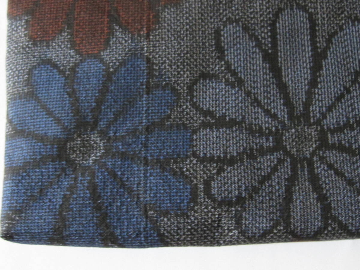 柄は、グレー系の地に、4色の花模様・菊?  (青味シルバー系、藍色、エンジ系、黒)