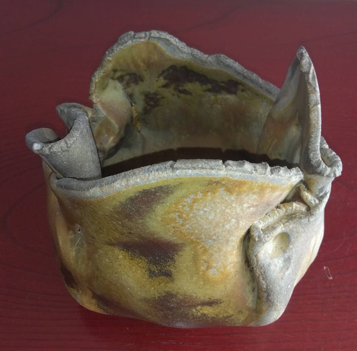 越前焼名工 中村豊(陶杉窯) 自然灰釉還元窯変の究極美が迸るモダニズムポップアートの先駆者の逸品花器【大】 斬新なデザイン造形観審美眼をもつ師による 越前和紙のモダニズムポップアート作品の如き作品花器をご堪能下さい。鉄分多く含み茶褐色に焼きあがる還元炎の輪廻の色彩を表す素朴な温かみある肌触りを持つ越前陶土「青ねば・赤べと・太古土」を最大限活かす形で作られ、越前(陶土)が表す独特の質感を最大限に活かす【石ハゼの妙】【灰被り】が「還元窯変美」「自然灰釉美」に三位一体化に組み合わされ斬新で魅力的な世界を創出しています。師の「至高の技」が心和む「究極窯変美」に焼き上がり、器に浮き出る自然灰釉美は越前焼魅力の世界を再確認させてくれます。 技巧的表現をも還元焼成させる際立つ(陶土)が表す独特の質感 薪と炎の神様が生み出した偶然の景色を楽しんで下さい。 日常生活用品とは言え師の斬新なデザイン造形観審美眼が際立つ逸品をご堪能下さい。 大サイズ:高さ160/200mm 幅150/190mm 見込み145/190mm 包装:クラフトボックスプチプチ包装