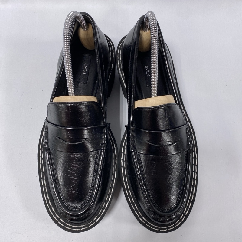 EVOL/イーボル/ダブルステッチ 厚底ローファー/IV5159/ボリュームソール/ブラック/コインローファー/ペニーローファー/プラットフォーム
