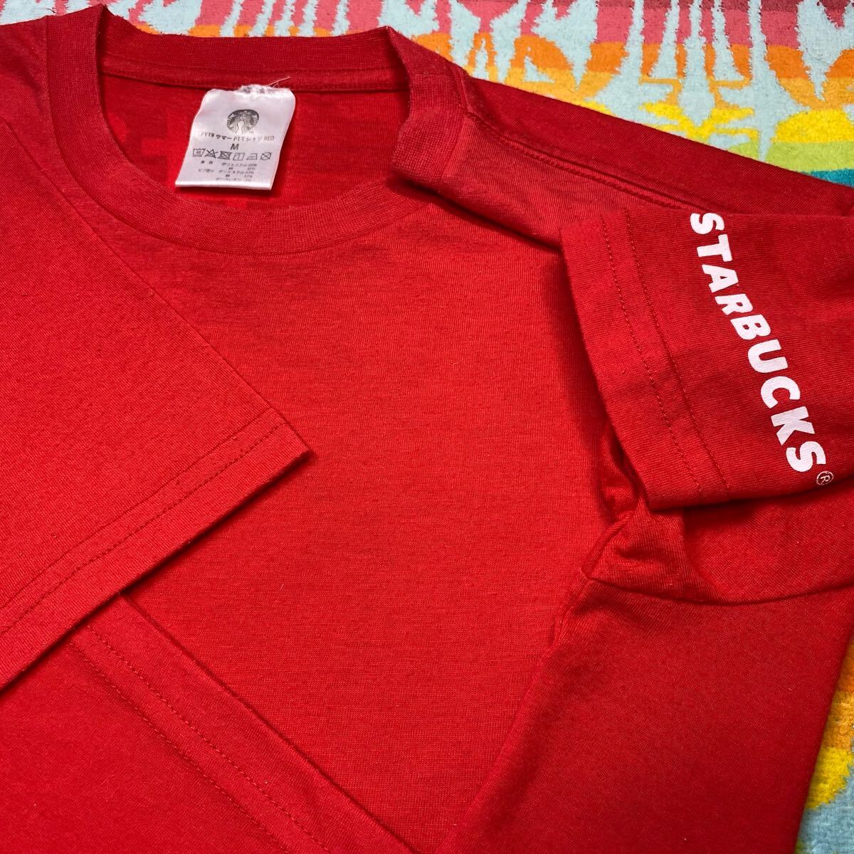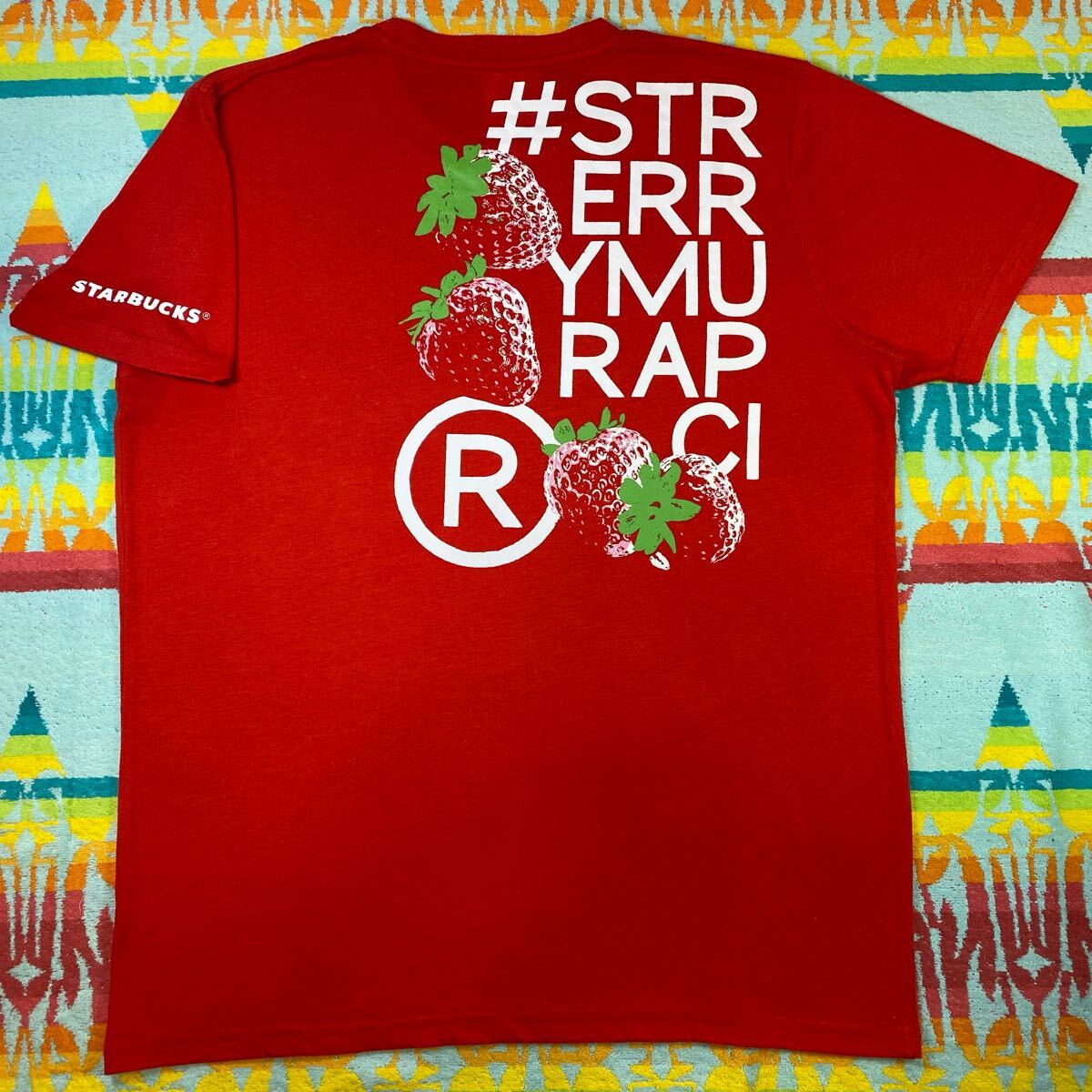 絵柄良好!STARBUCKSスターバックス コーヒー スタバFY19年夏#STRAWBERRYVERYMUCHFRAPPUCCINO REDスタッフパートナー限定非売品TシャツM企業