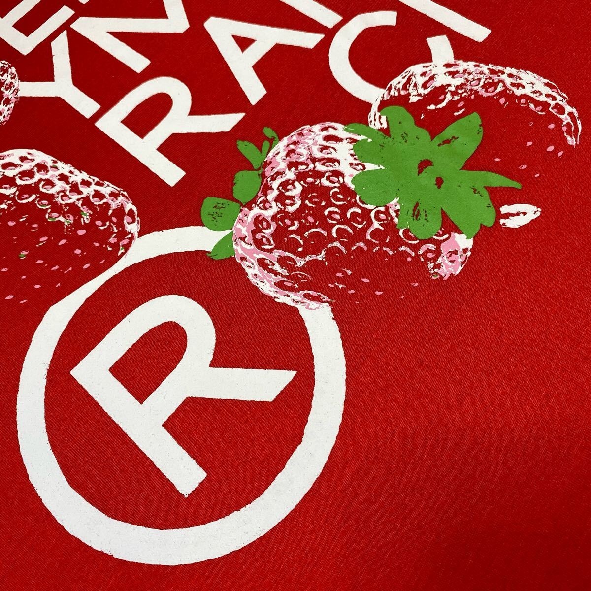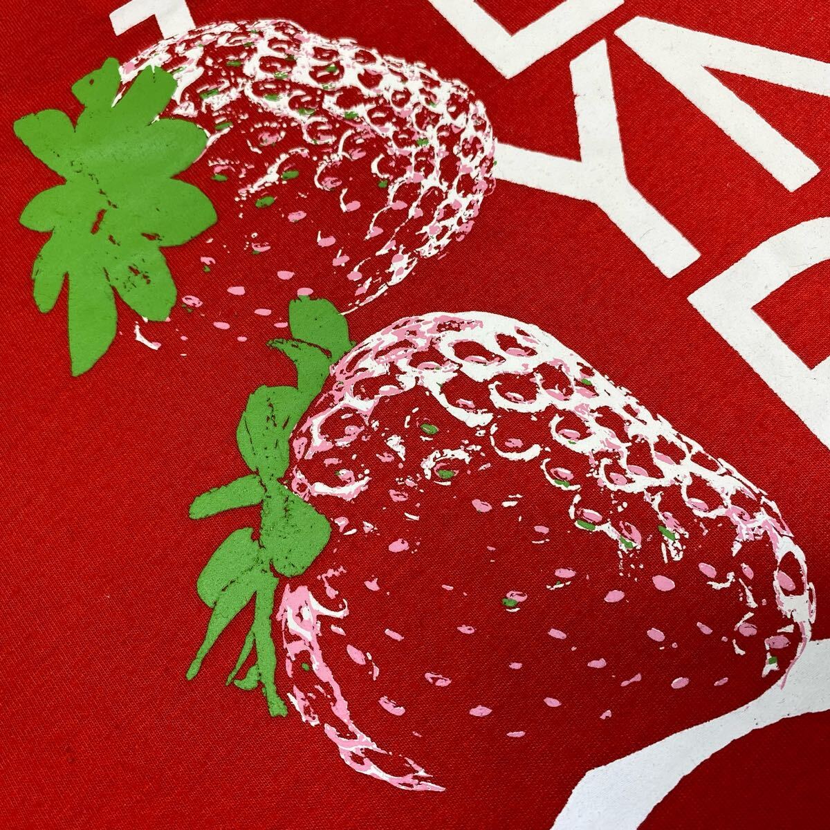 【(R)】ロゴと【イチゴ過ぎる、イチゴ感】をイメージしたモチーフ、みずみずしい【完熟イチゴ】【4個】を落とし込んだ