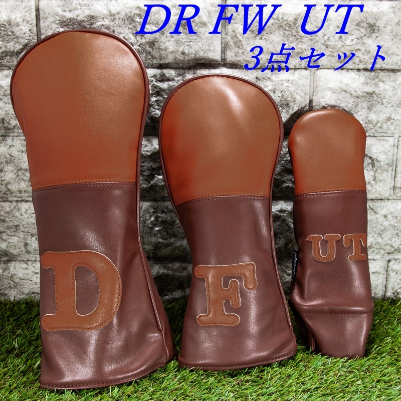 ゴルフクラブカバー ヘッドカバー ドライバー(DR)フェアウェイウッド(FW)ユーティリティ用(UT) 3点セット