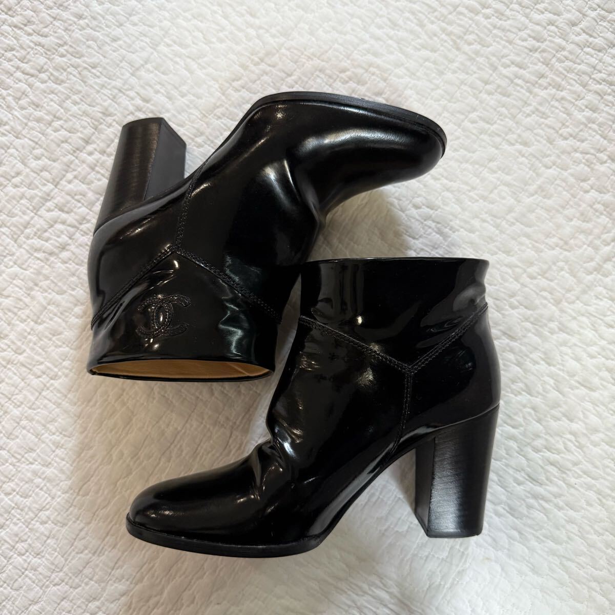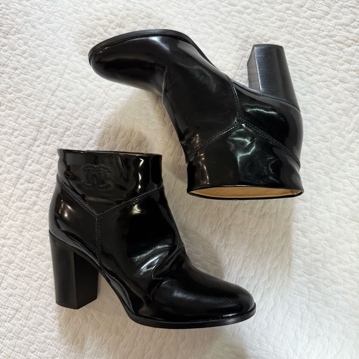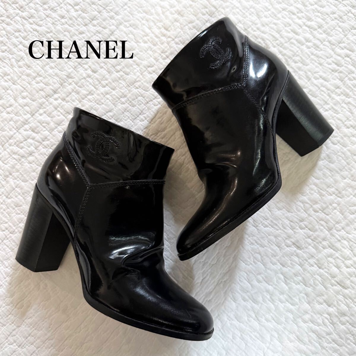 美品 CHANEL シャネル ショートブーツ ココマーク パテントレザー CCマーク ブラック 黒 35 1/2 22.5cm レディース ブランド 高級