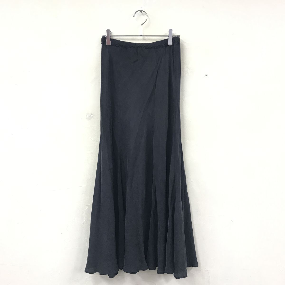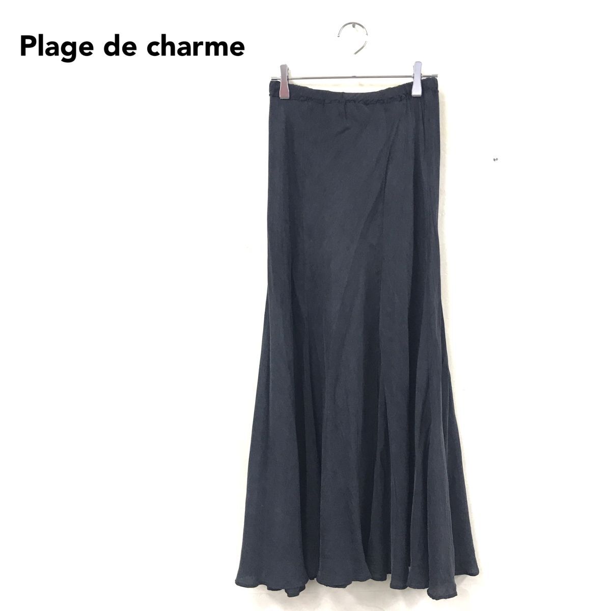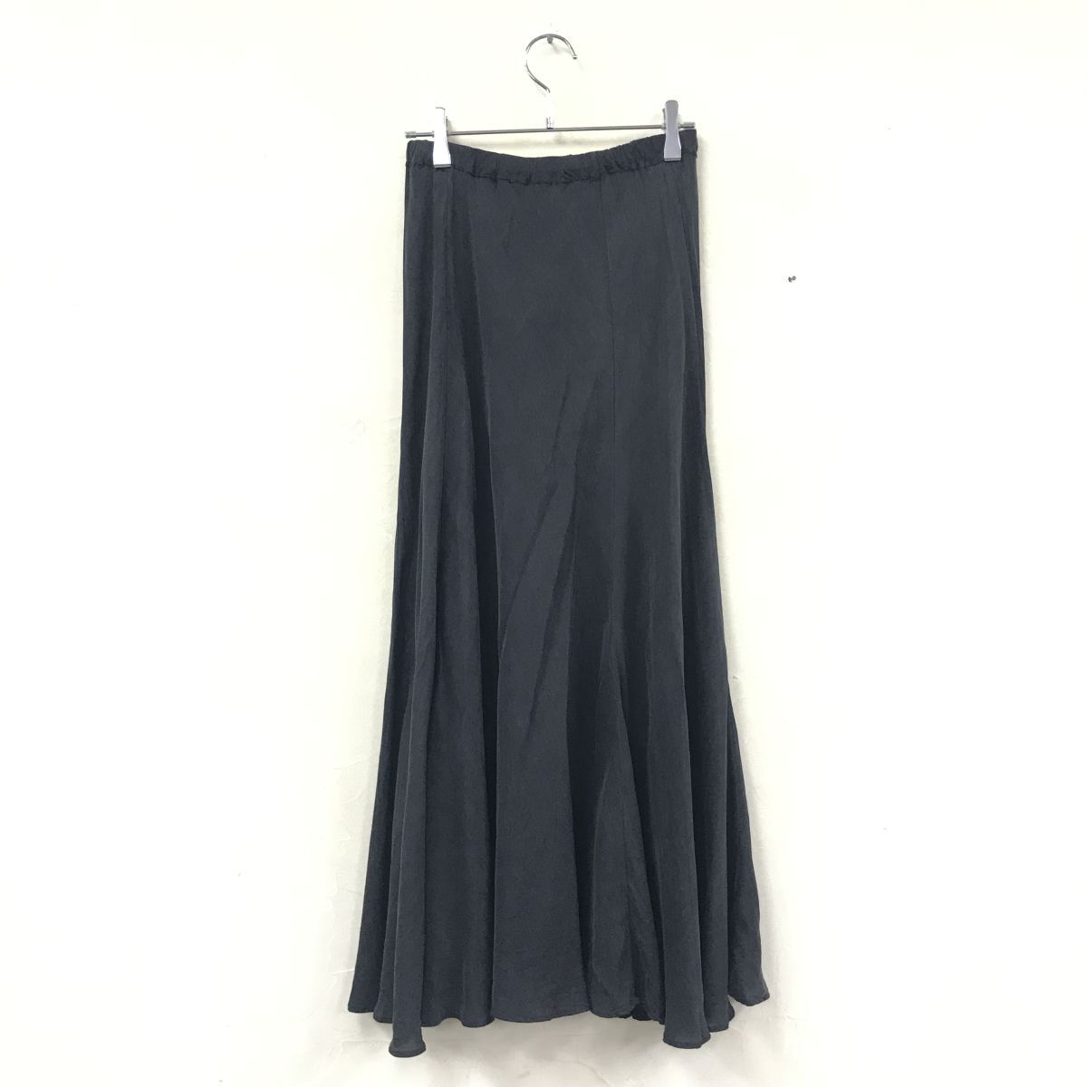 2S1532-Q◆Plage de charme プラージュ ロングスカート フレア 無地 ウエストゴム スリット レディース◆size 36 黒 ブラック キュプラ100