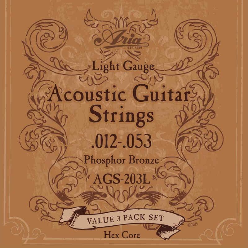[弦×3セット] Aria AGS-203L×1(計3セット) アコギ弦3セットパック フォスパーブロンズ 12-53アコギ弦