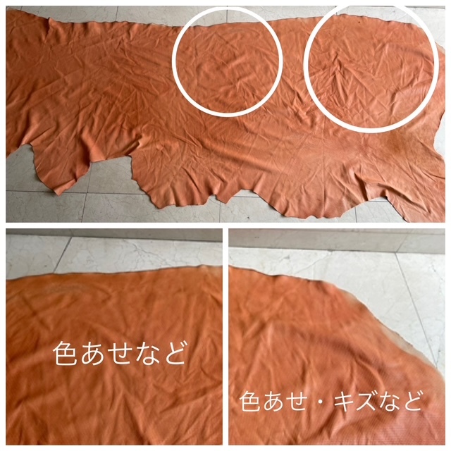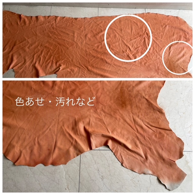 ◆お買い得◆☆革 半裁 牛革 型押し オレンジ系統 ①