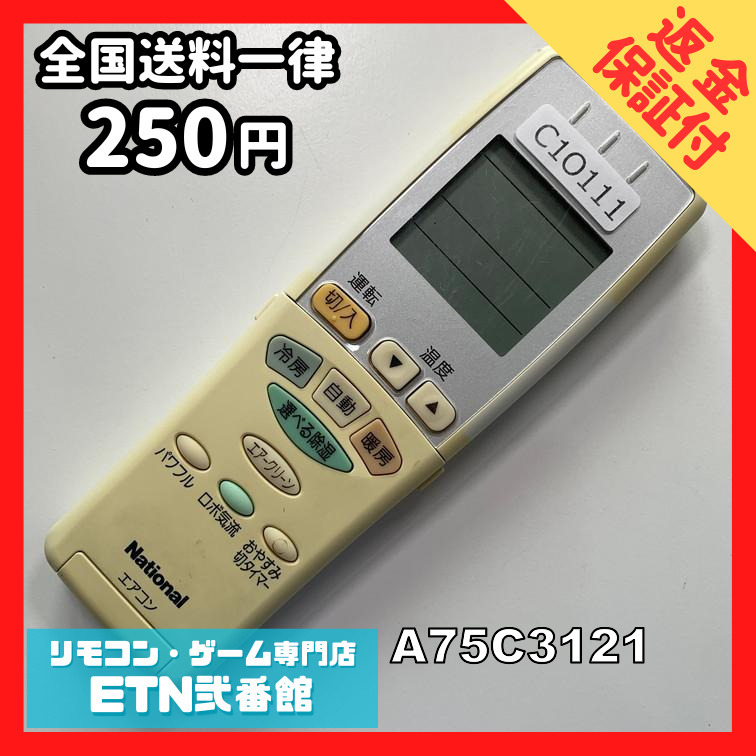 C1O111 【送料250円】エアコン リモコン / National ナショナル A75C3121 動作確認済み★即発送★ * 冷房 暖房