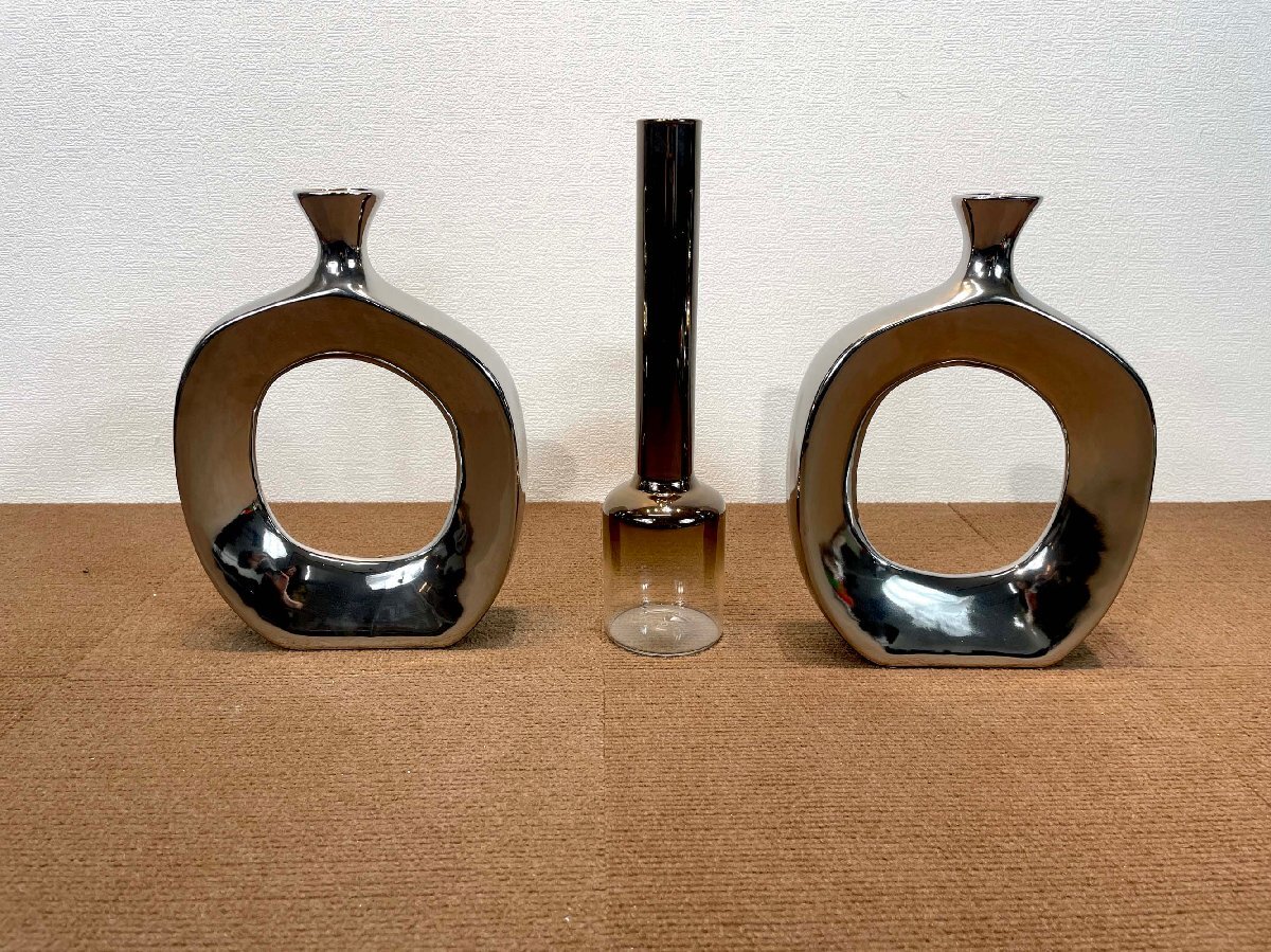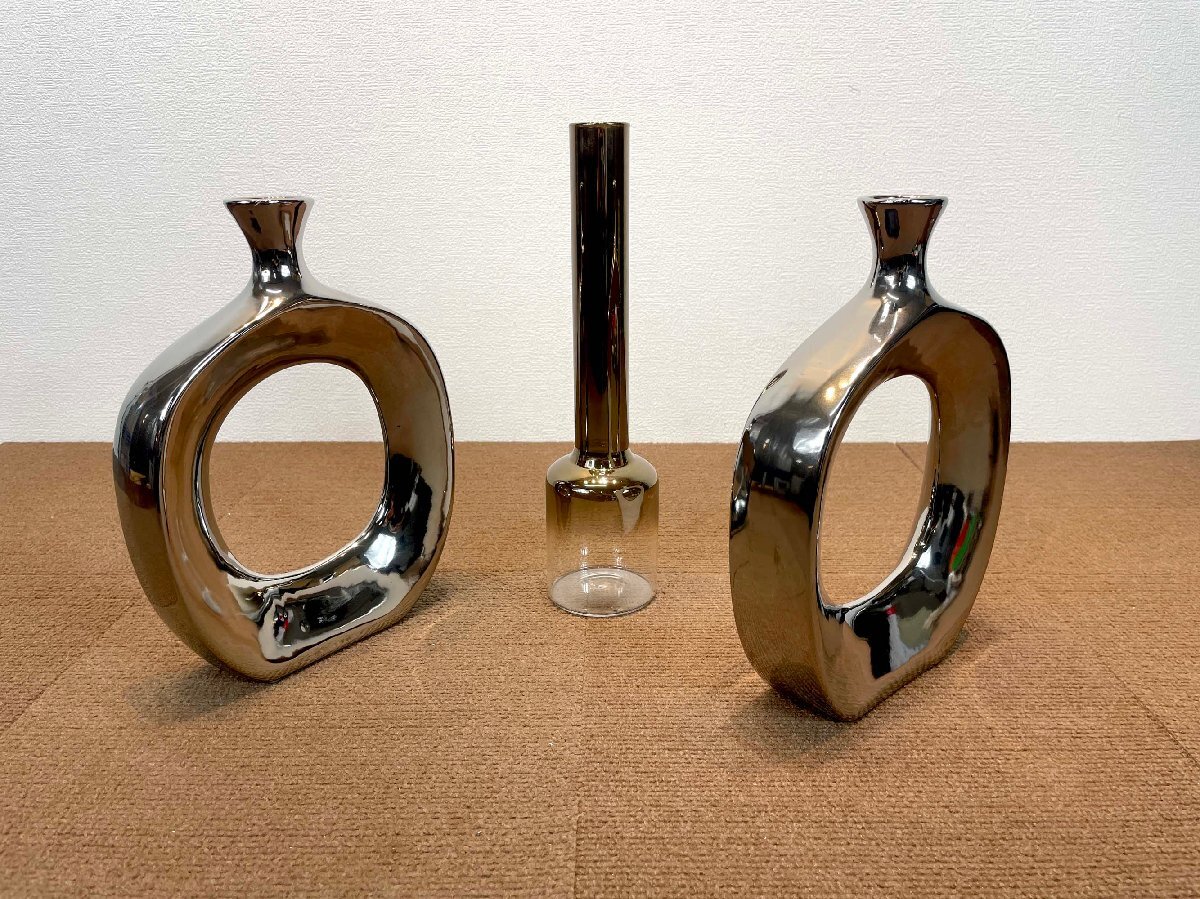 【福岡】インテリア雑貨 フラワーベース 3個セット◆花瓶◆HUNT9 他◆茶:W73 H303◆モデルR展示品◆BR9833_Ts