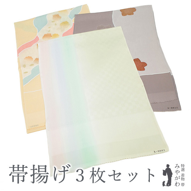 帯揚げ 3枚 セット まとめて 正絹 ホワイトリリー ぼかし ローズグレイ 桜 薄卵色 道長取り 辻が花 フォーマル 新古品 みやがわ sb21